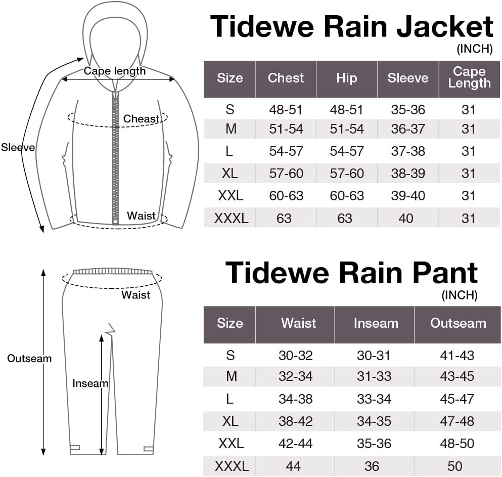 TIDEWE Rain Suit, Waterproof Breathable Lightweight Rainwear (Black Size XL)