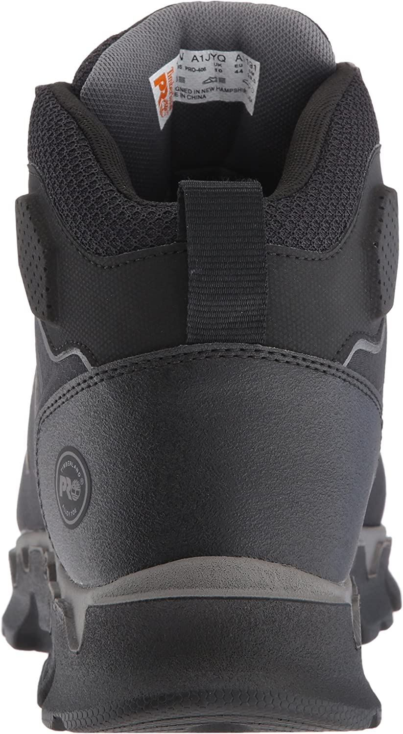 Men's Timberland Pro, Powertrain Sport Mid Alloy EH Work Boot. These work boots will provide the ultimate in protection and comfort. Perfect for industrial or warehouse work. Metal free upper design with manmade and fabric featuring an alloy safety toe for lightweight protection Lace up closure for a secure fit with a padded tongue and collar for added support Fabric lining with antimicrobial treatment for odor control with a cushioned footbed for added comfort Anti-fatigue technology built in the outsole helps absorb shock and returned energy to key ones of the foot Electrical safe design with Timberland Pro 24/7 comfort suspension for ultimate comfort Slip, oil- and abrasion-resistant with static dissipative and non-marking rubber outsole. Heel Height of 1.50 inches