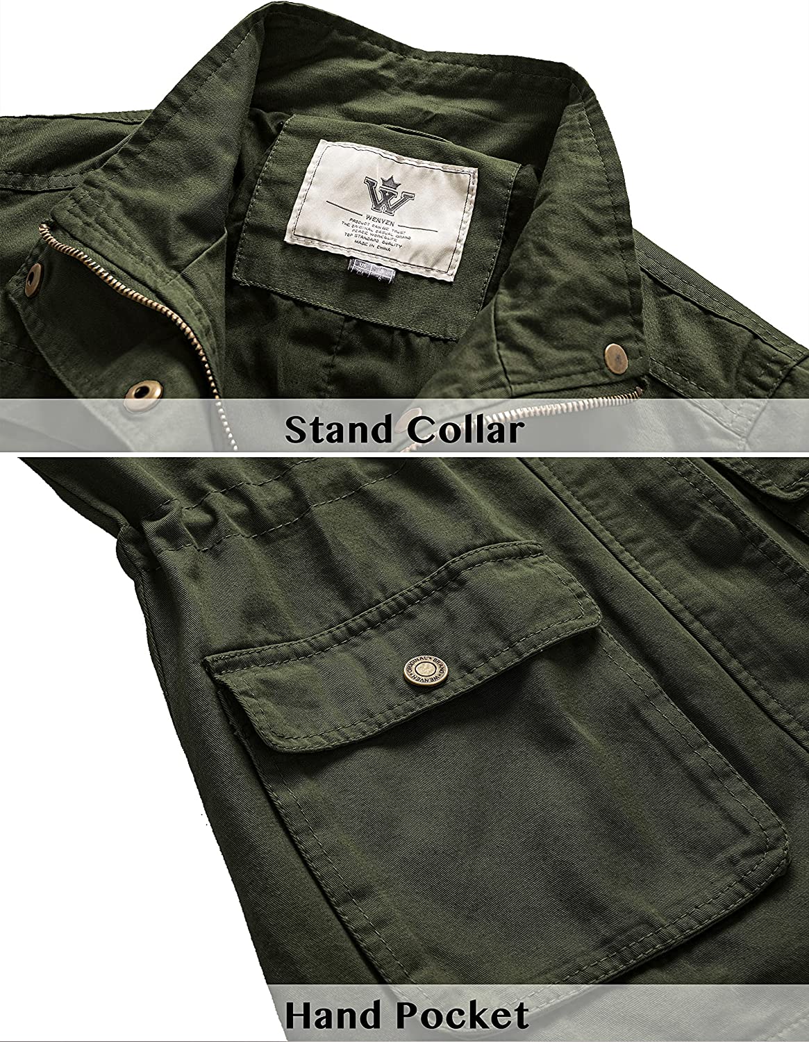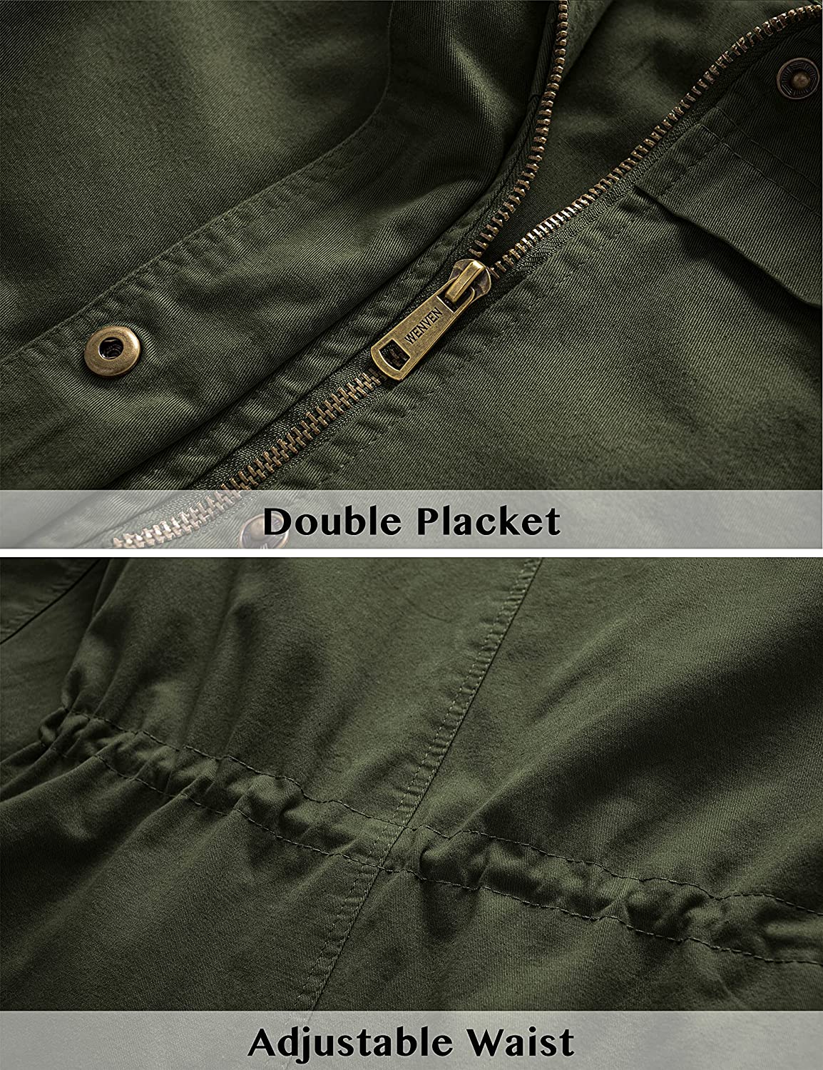 WenVen Women's Casual Military Jacket Cotton Stand Collar Utility Anorak Coat
