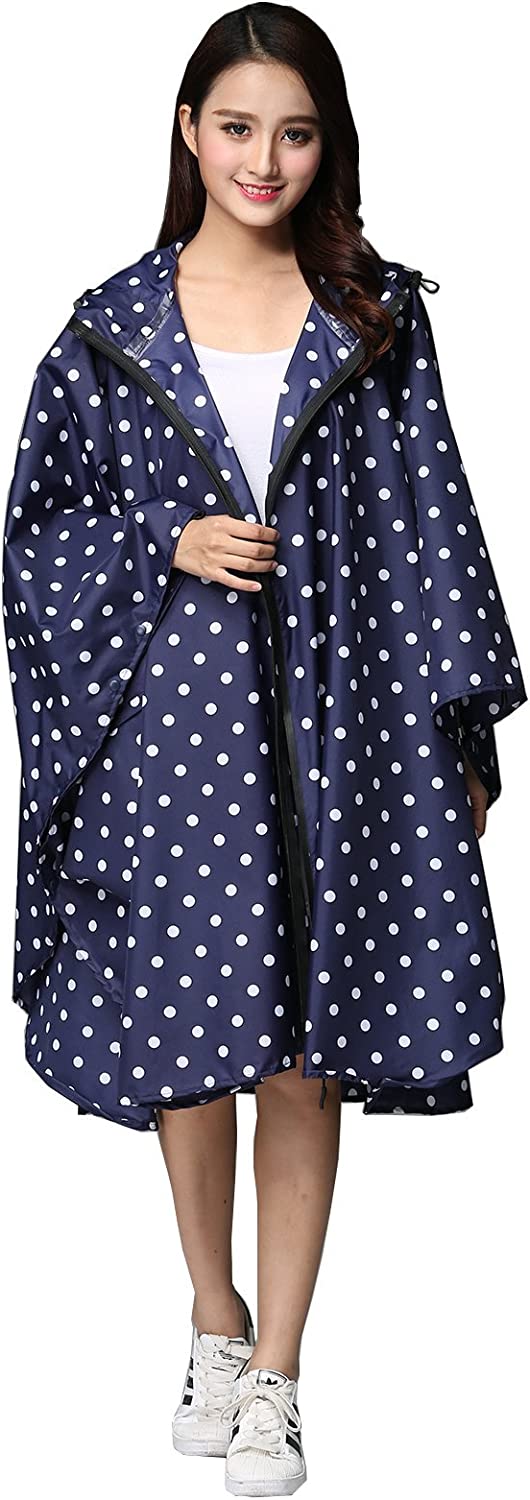 Womens Rain Poncho Stylish Polyester Waterproof Raincoat Free Size with Hood Zipper Various Colors Styles