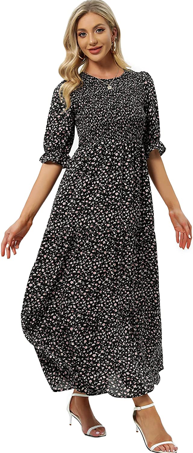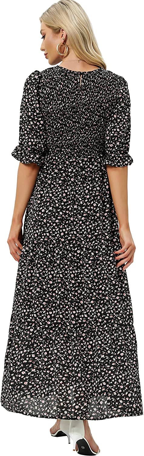 Womens Summer Casual Half Sleeve Bohemian Floral Tiered Maxi Dress