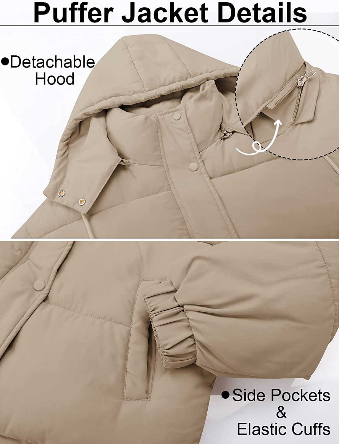 WOTOZR Women's Winter Hooded Puffer Jacket Oversized Long Sleeve Zip Up Quilted Short Down Coat with Pockets