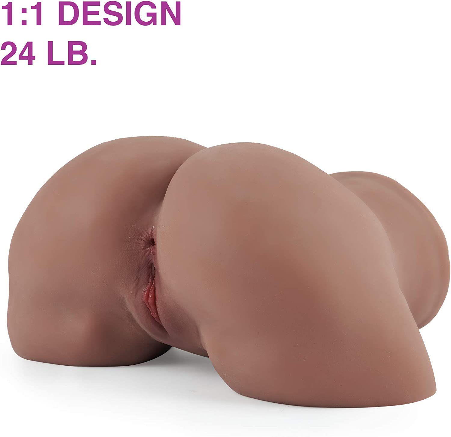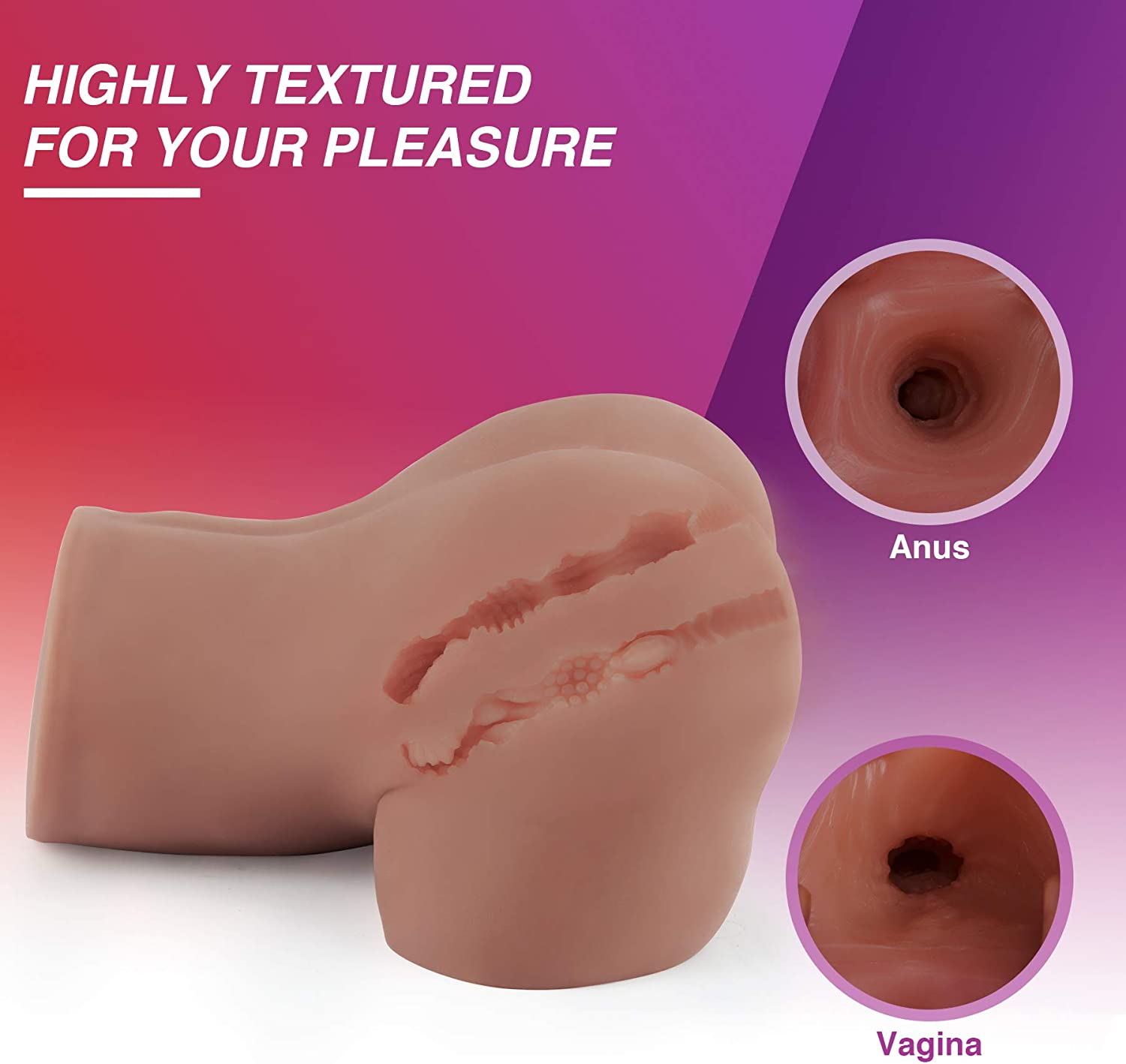 Y-NOT Male Masturbator Stroker Sex Toy 24lb TPE Pelvis with Tight Ribbed Vaginal & Anal Canal, Butt & Pussy with Hermetic Seal for Max Suction with Cleaning Tool, Tan