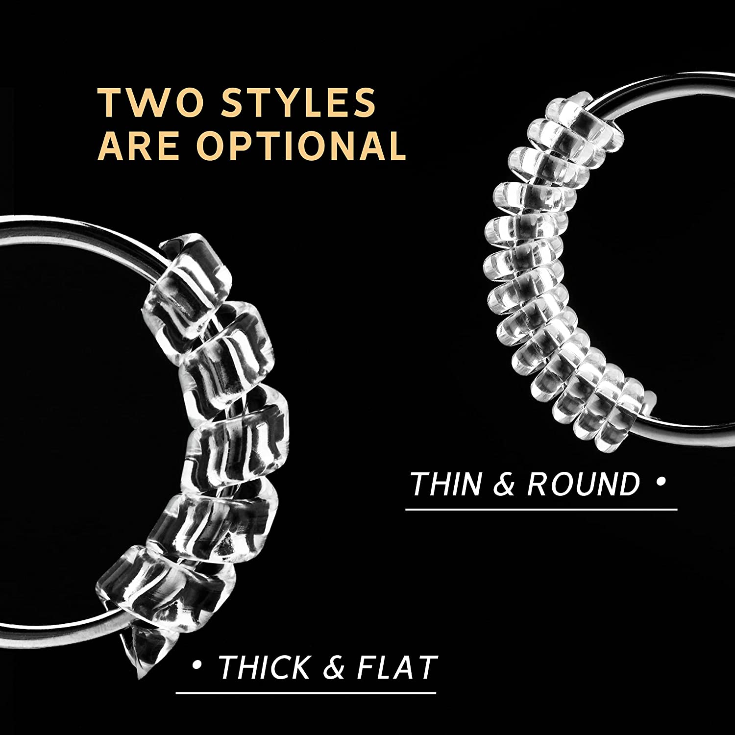 12 Pack Ring Size Adjuster for Loose Rings Invisible Transparent Silicone Guards Clip Noodle Jewelry Tightener Connector Fitter Resizer 4 Sizes Fit Almost Any Ring for Women and Men