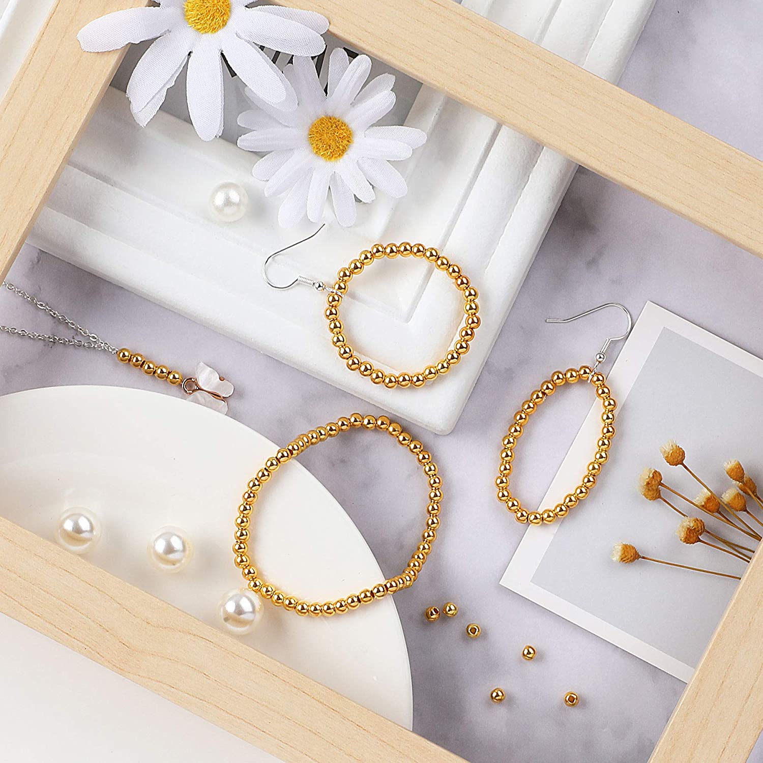 1200Pcs 4mm Smooth Round Beads Gold Spacer Loose Ball Beads for Bracelet Jewelry Making Craft