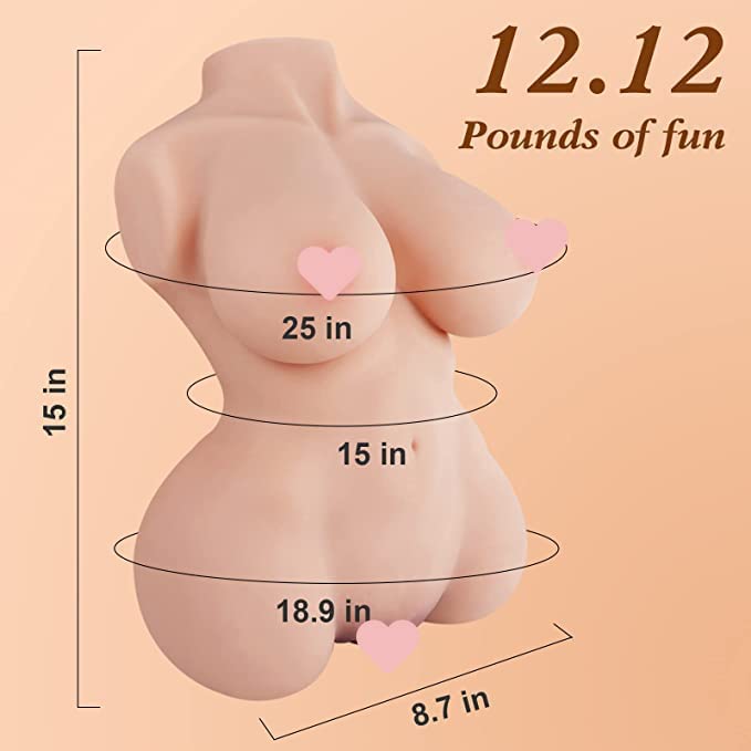 12.2 Sex Doll Male Masturbator with Torso, 3 in 1 Realistic Big Boobs Tight Vaginal & Anal for Men Masturbation, 3D Life-Sized Love Doll Pussy Ass Stroker Adult Sex Toy for Men (Fair)