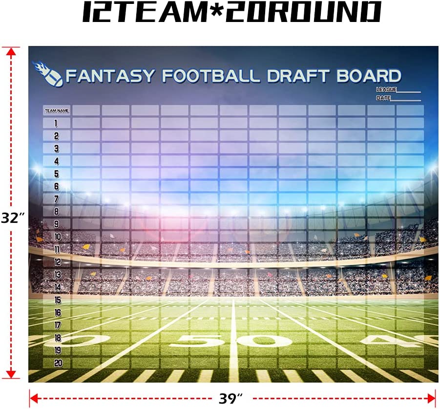 2022 Fantasy Football Draft Board Kit 12 Teams 20 Rounds with 528 Player Sticker Labels