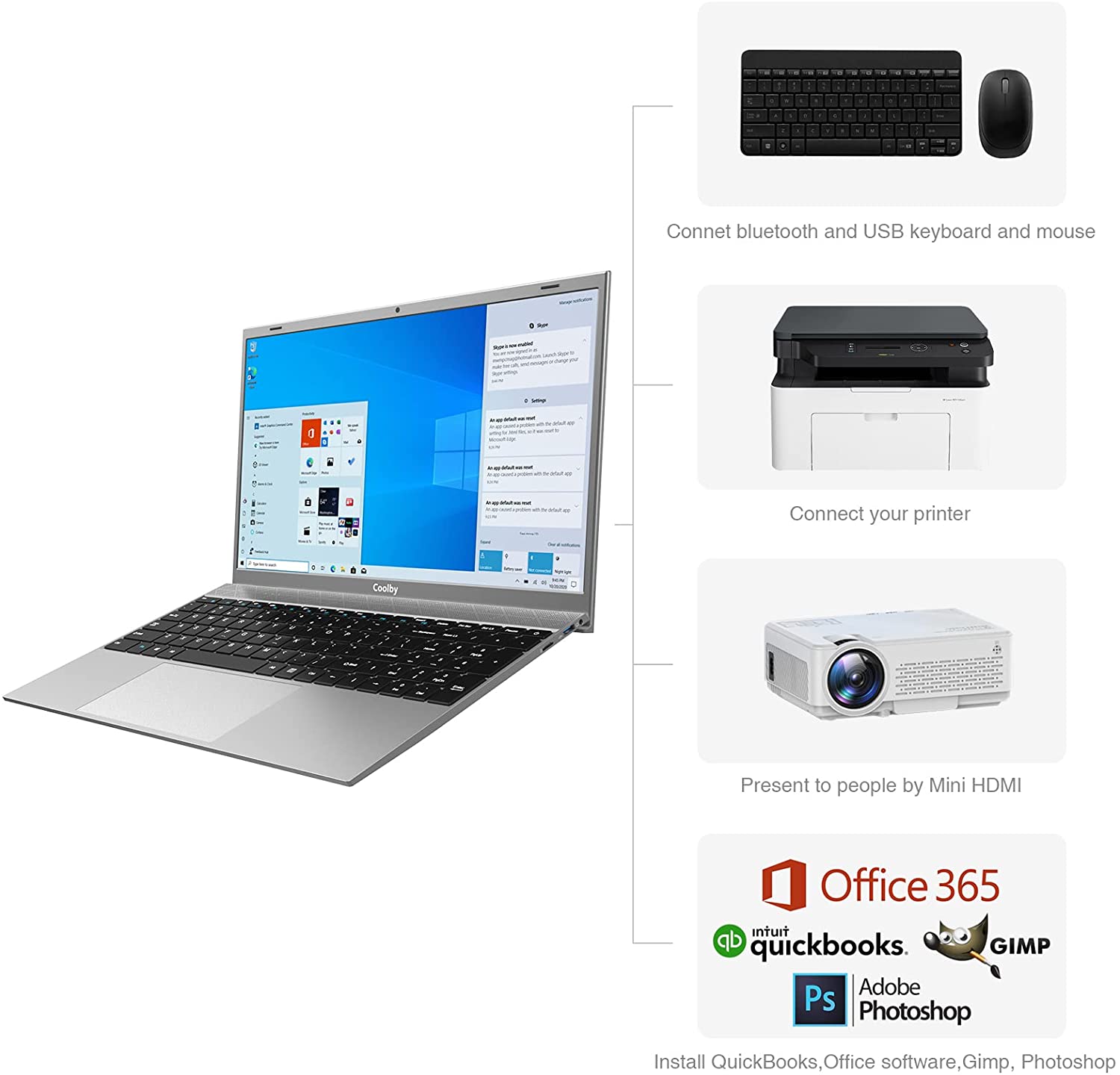2022 Windows 11 Laptop, 15.6 inch 1920x1080 IPS Display, Coolby 8GB DDR4 RAM / 256GB SSD Laptop Computers, Intel J4125 Quad-Core Processor Notebook PC, Support 2.4G/5G Hz WiFi, BT, Full Size Keyboard