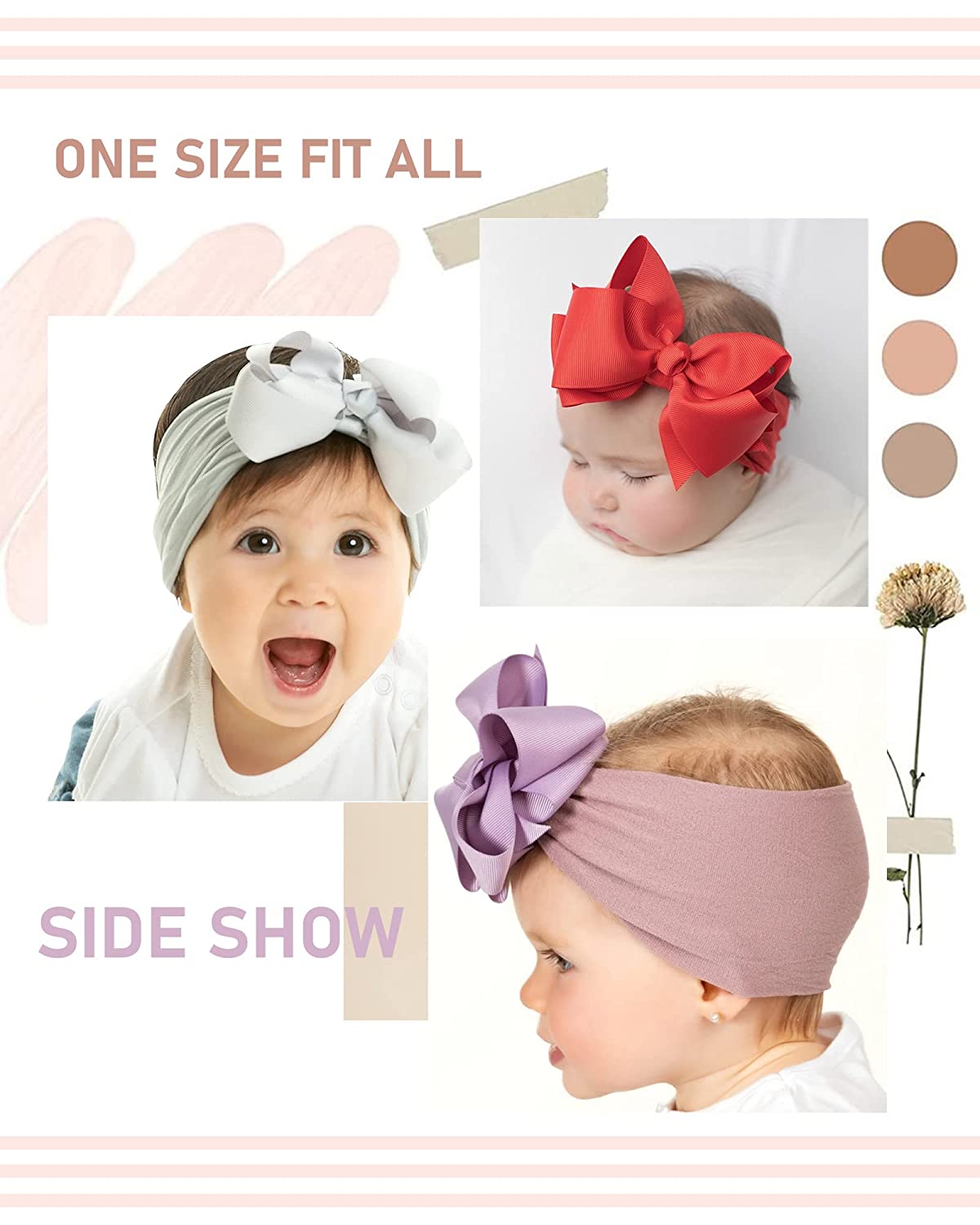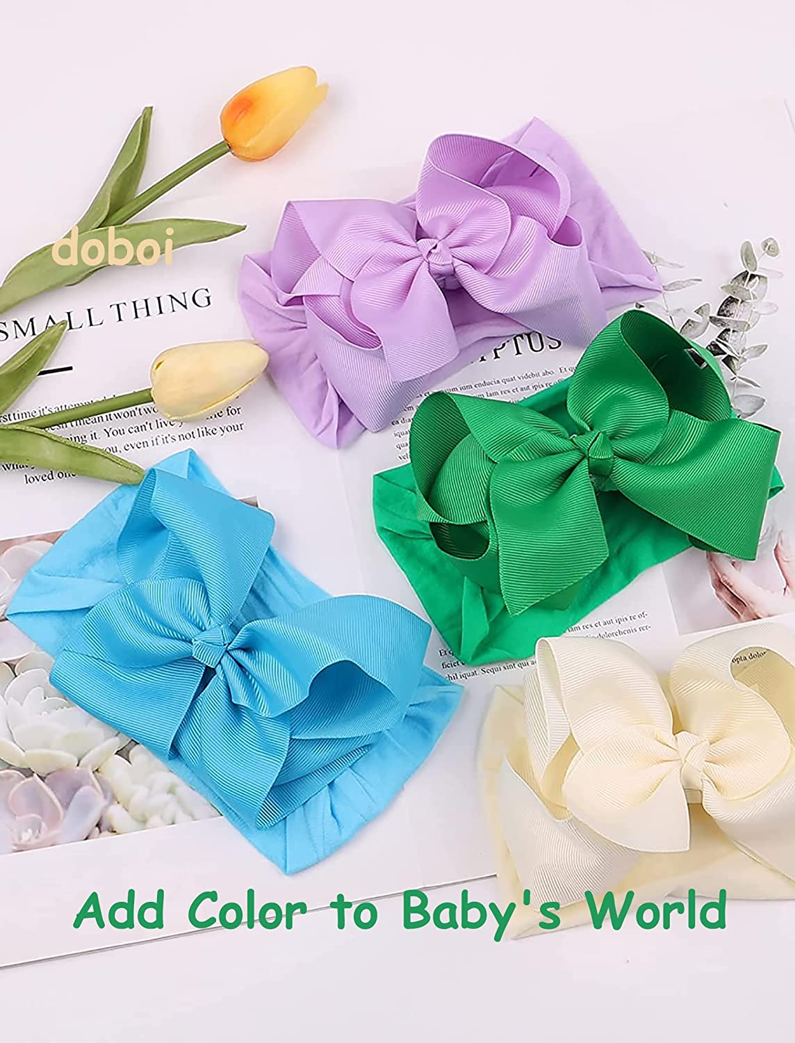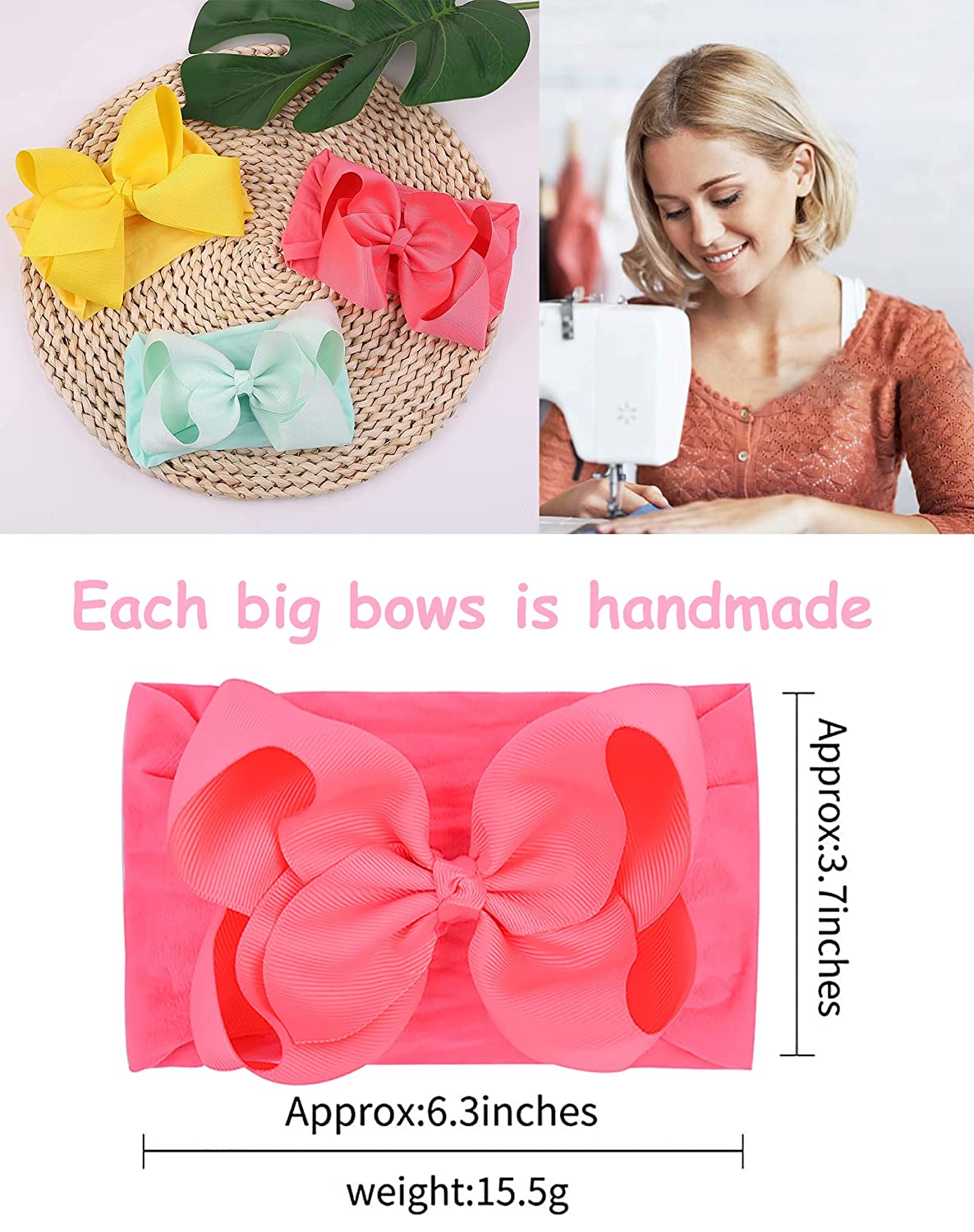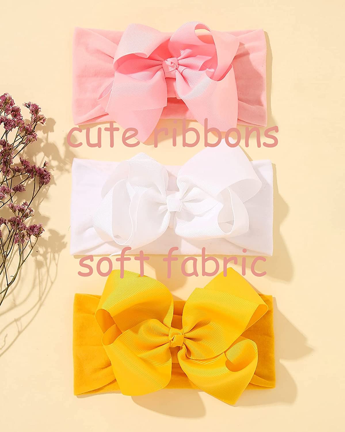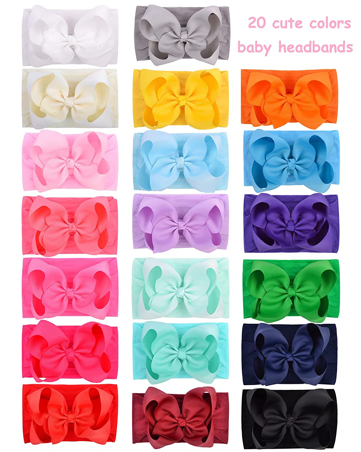 20pcs 6 Inches Baby Girls Big Bows Headbands Elastic Nylon Hairbands Turban Hair Accessories for Newborns Infants Toddlers and Kids