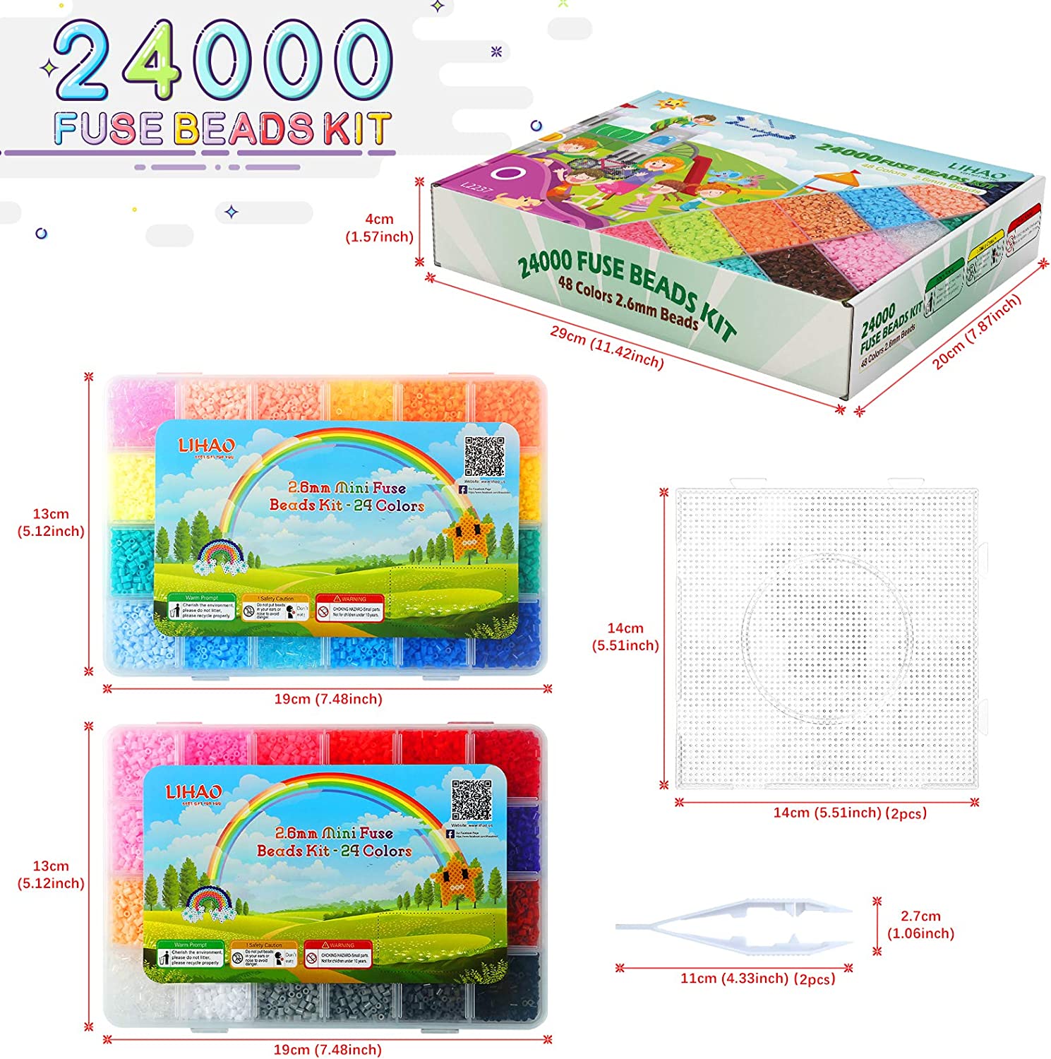 24000 x Fuse Beads Kit, LIHAO 48 Colors 2.6mm Mini Fuse Beading Kit, Multicolored Iron on Fused Beads Kit, Great Supplies for Fuse Beads Artist, Kid's Birthday Gift