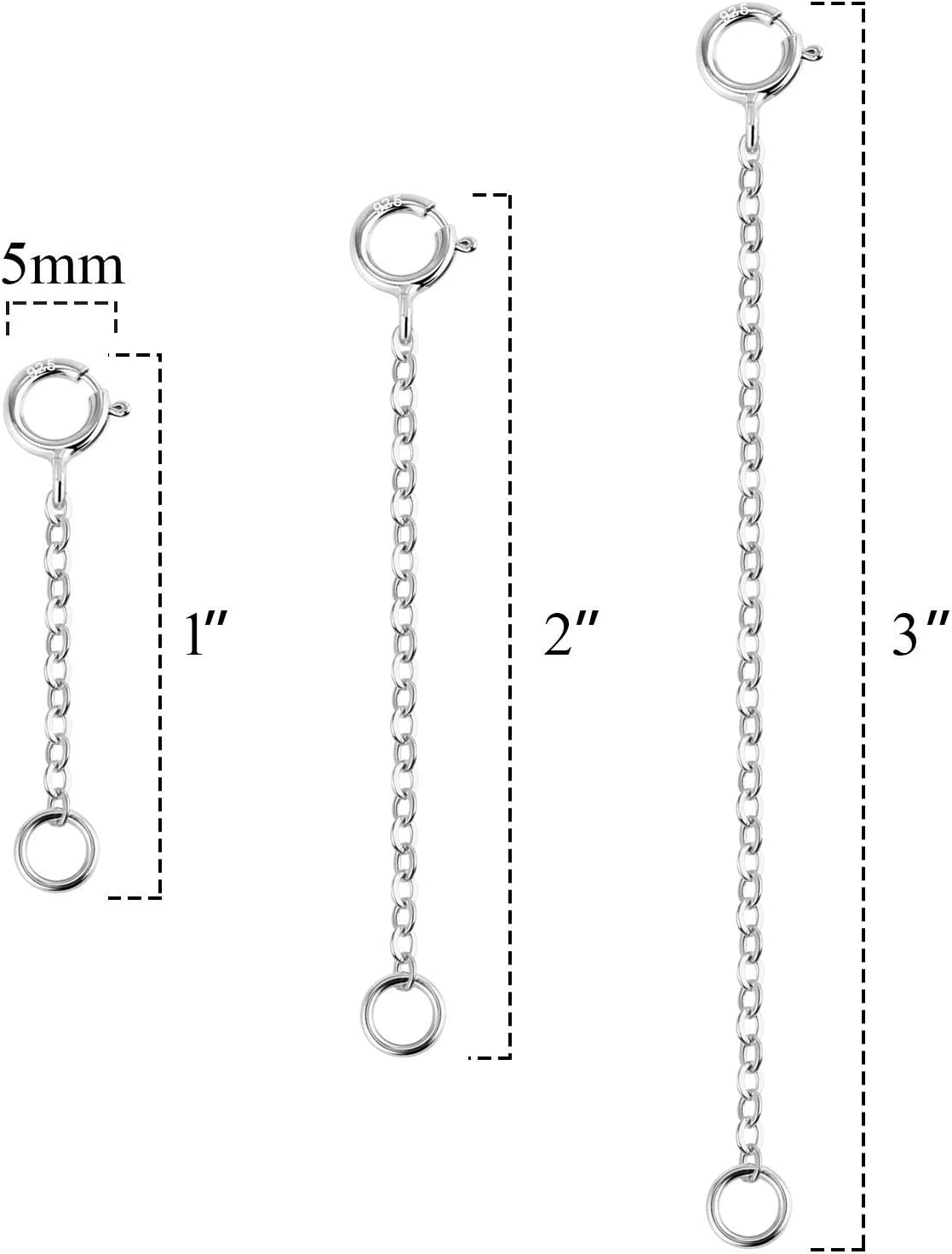 3 Pcs 925 Sterling Silver Necklace Extenders for Women Durable Strong Removable Necklace Bracelet Anklet Extension for Jewelry Making(1 2 3 Inch, Silver)