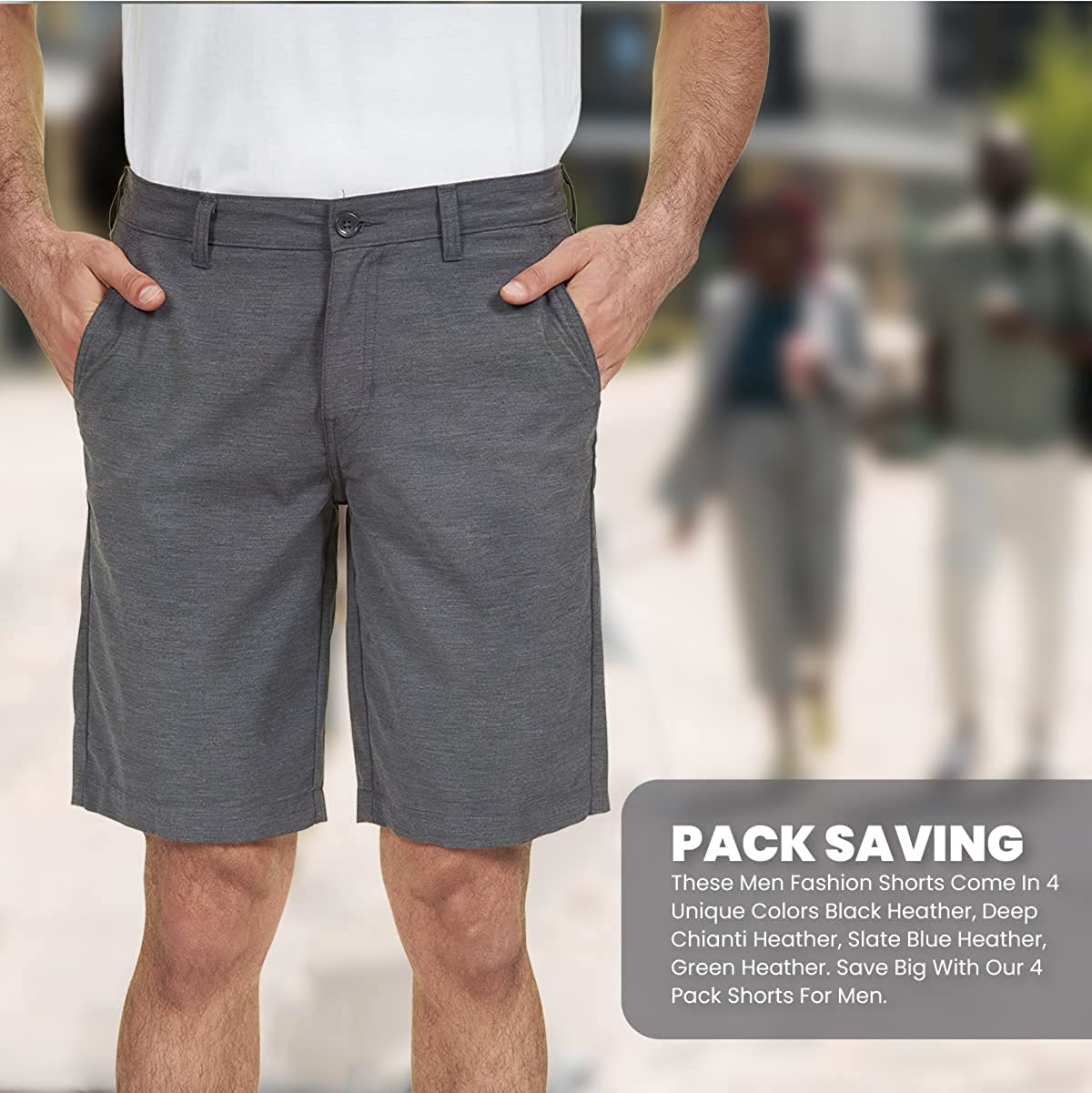 4 Pack Hybrid Shorts for Men Casual Dress Classic Golf Flat Front Essential Stretch Summer Men's 9.5 Inch Inseam