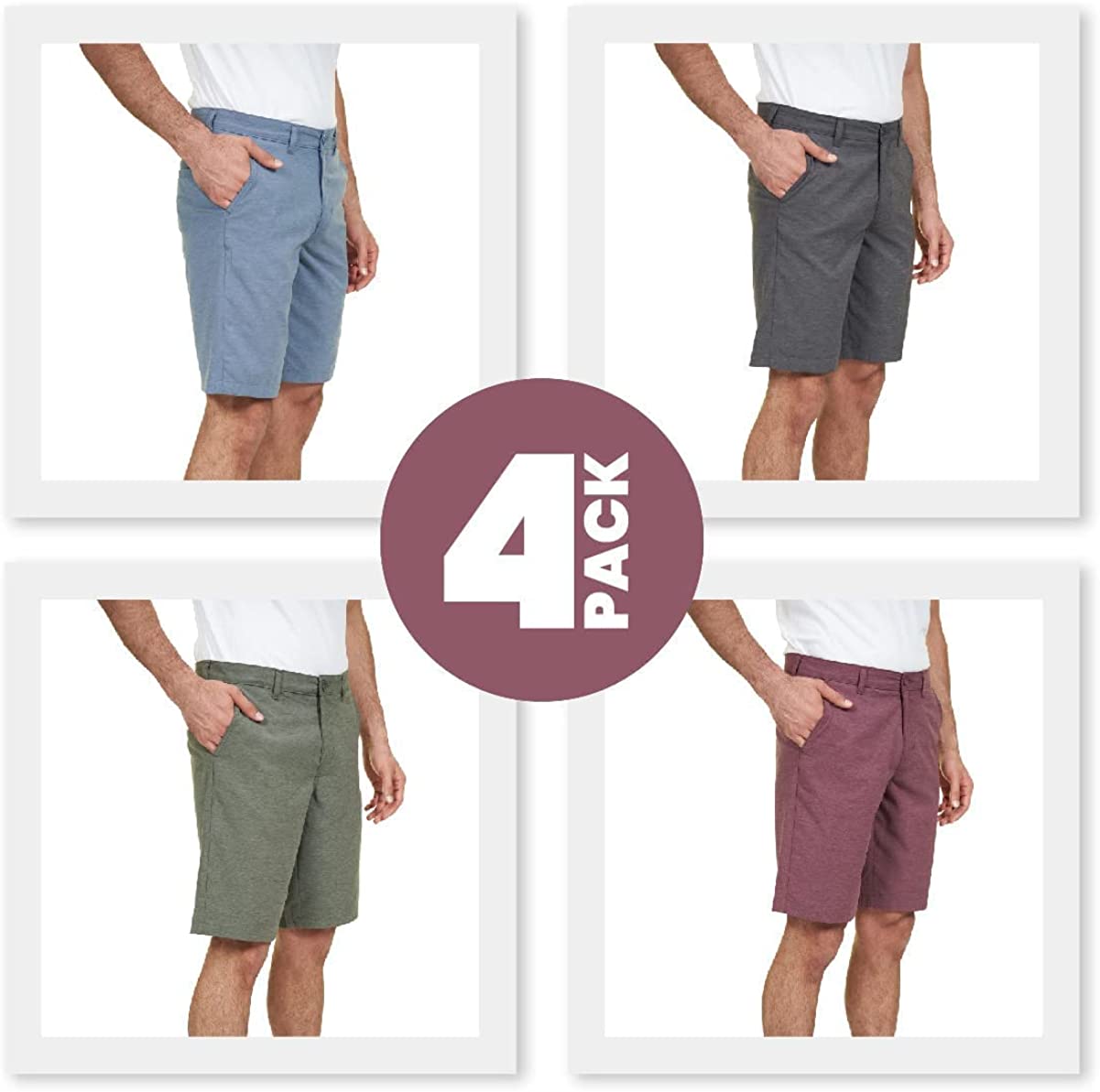 4 Pack Hybrid Shorts for Men Casual Dress Classic Golf Flat Front Essential Stretch Summer Men's 9.5 Inch Inseam