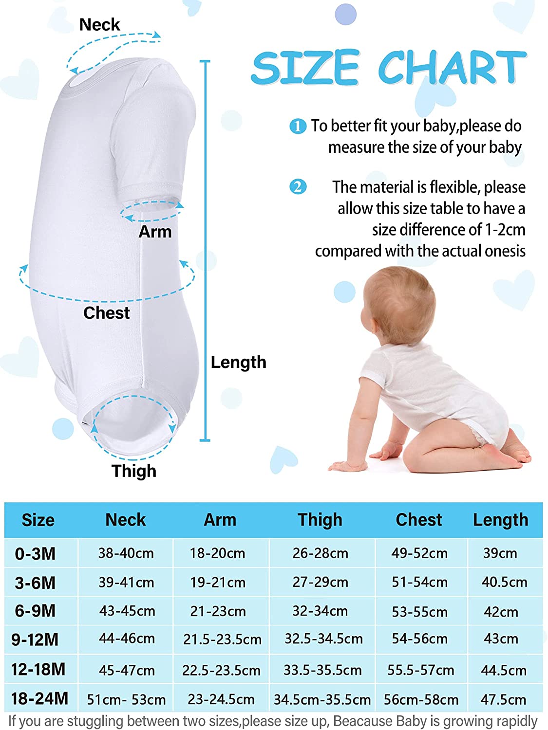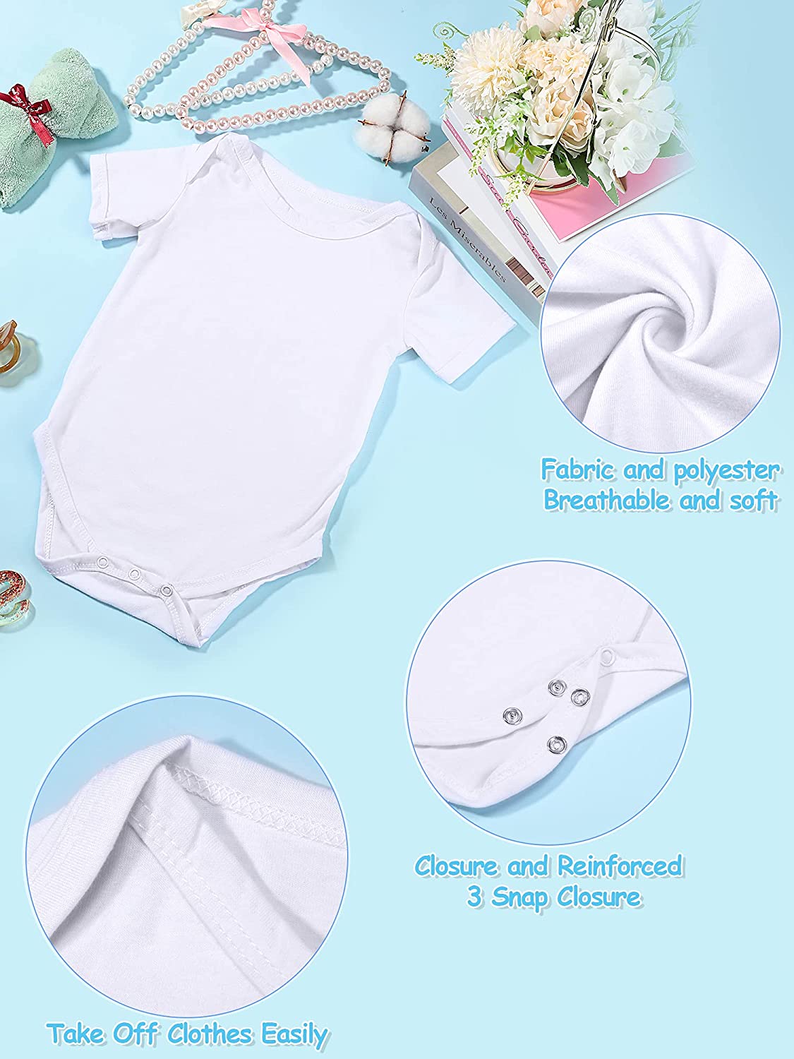 The bottom of this baby blank short sleeve has pulled on closure and reinforced three snap closure, which is convenient for changing the baby's diaper, you can also easily put in clothes for your child.