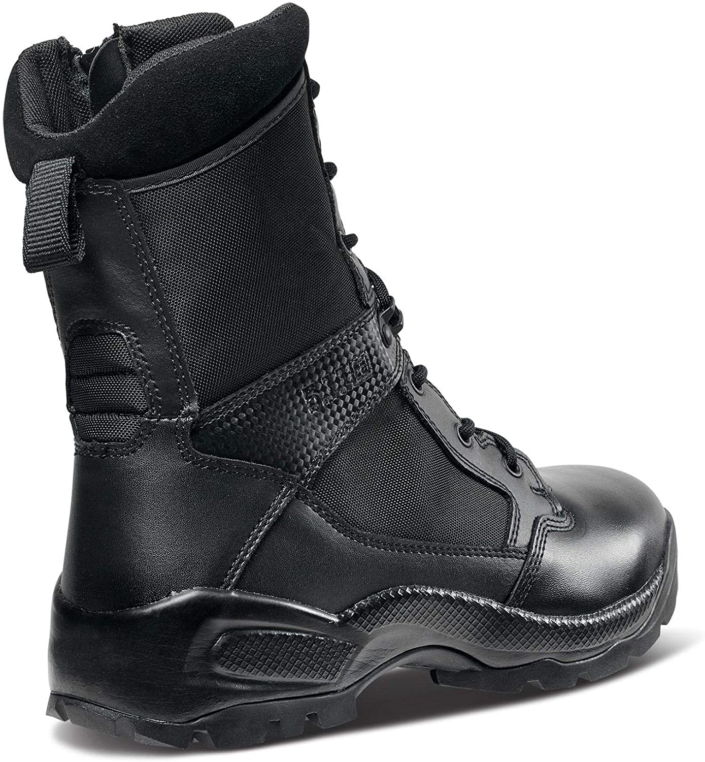 The boot worn by the world's leading public safety Personnel, the 5.11 A.T.A.C., just got promoted. It's lighter and more comfortable, yet maintains its reputation for toughness and durability. A new air flow tongue and full-length dual durometer ortholite footbed work to keep your feet cool, dry and comfortable all day, every day. Another new feature, The achilles heel flex zone, gives a critical part of your foot more range of motion without compromising support. The full-grain leather toe, 840D nylon upper and shock Mitigation System provide the kind of rugged protection you need; while the knife pocket keeps an important ally within reach.
