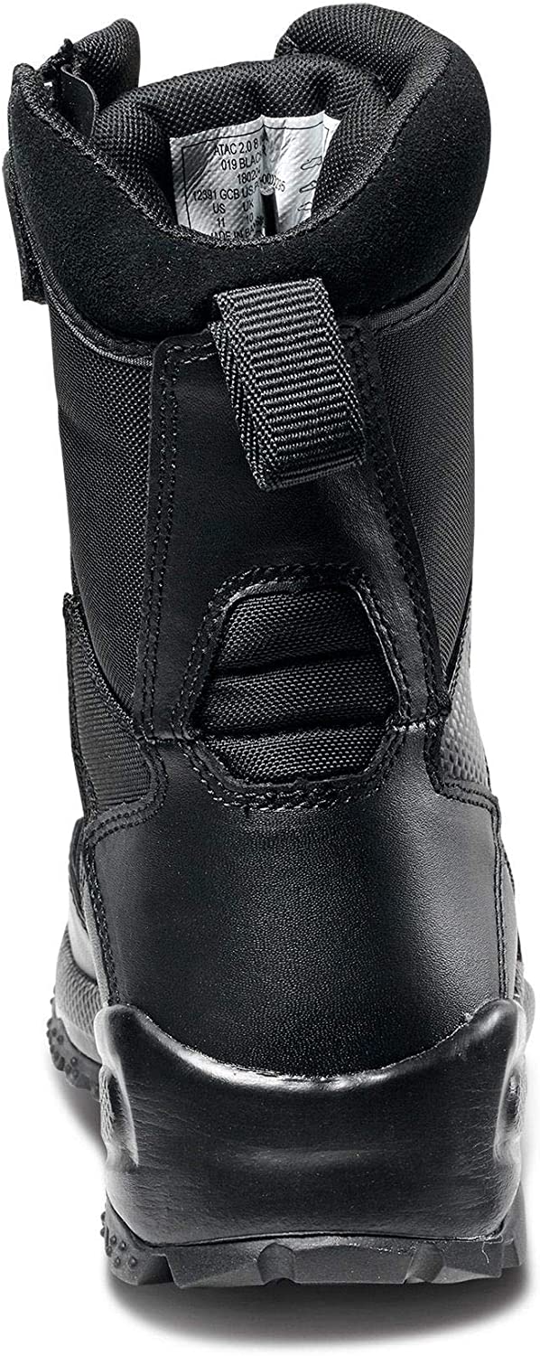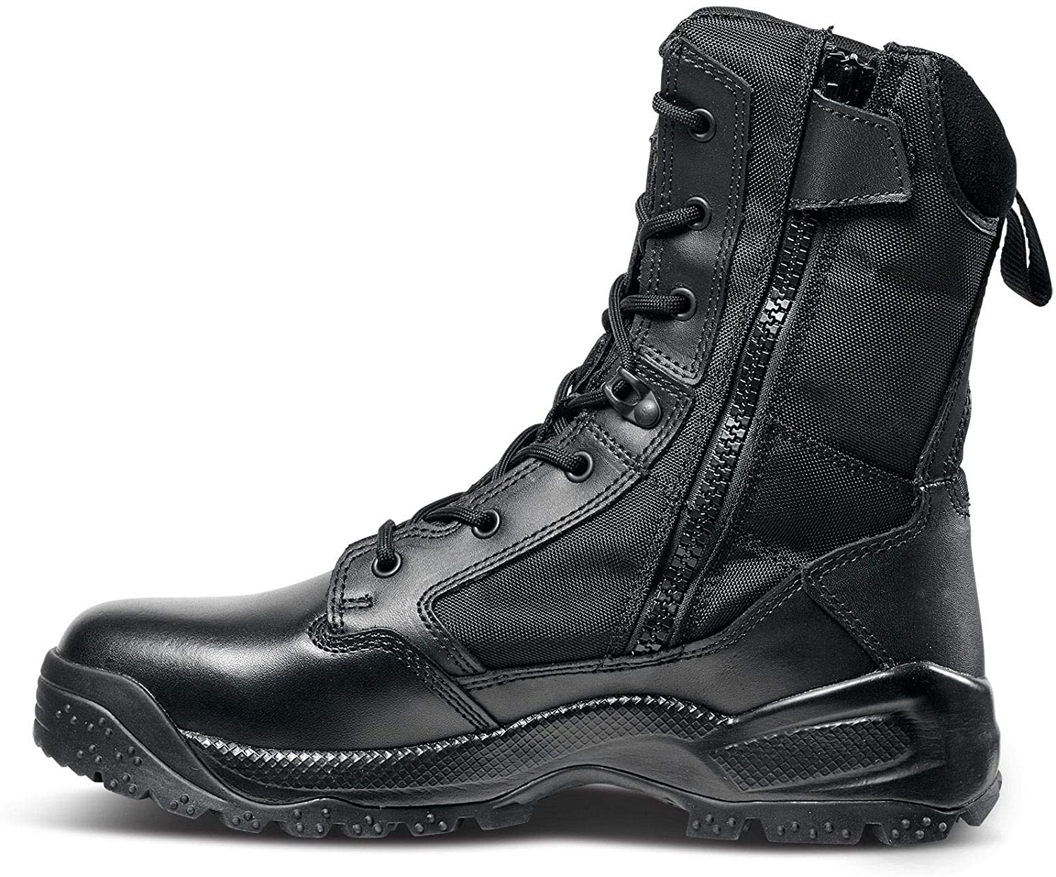 The boot worn by the world's leading public safety Personnel, the 5.11 A.T.A.C., just got promoted. It's lighter and more comfortable, yet maintains its reputation for toughness and durability. A new air flow tongue and full-length dual durometer ortholite footbed work to keep your feet cool, dry and comfortable all day, every day. Another new feature, The achilles heel flex zone, gives a critical part of your foot more range of motion without compromising support. The full-grain leather toe, 840D nylon upper and shock Mitigation System provide the kind of rugged protection you need; while the knife pocket keeps an important ally within reach.