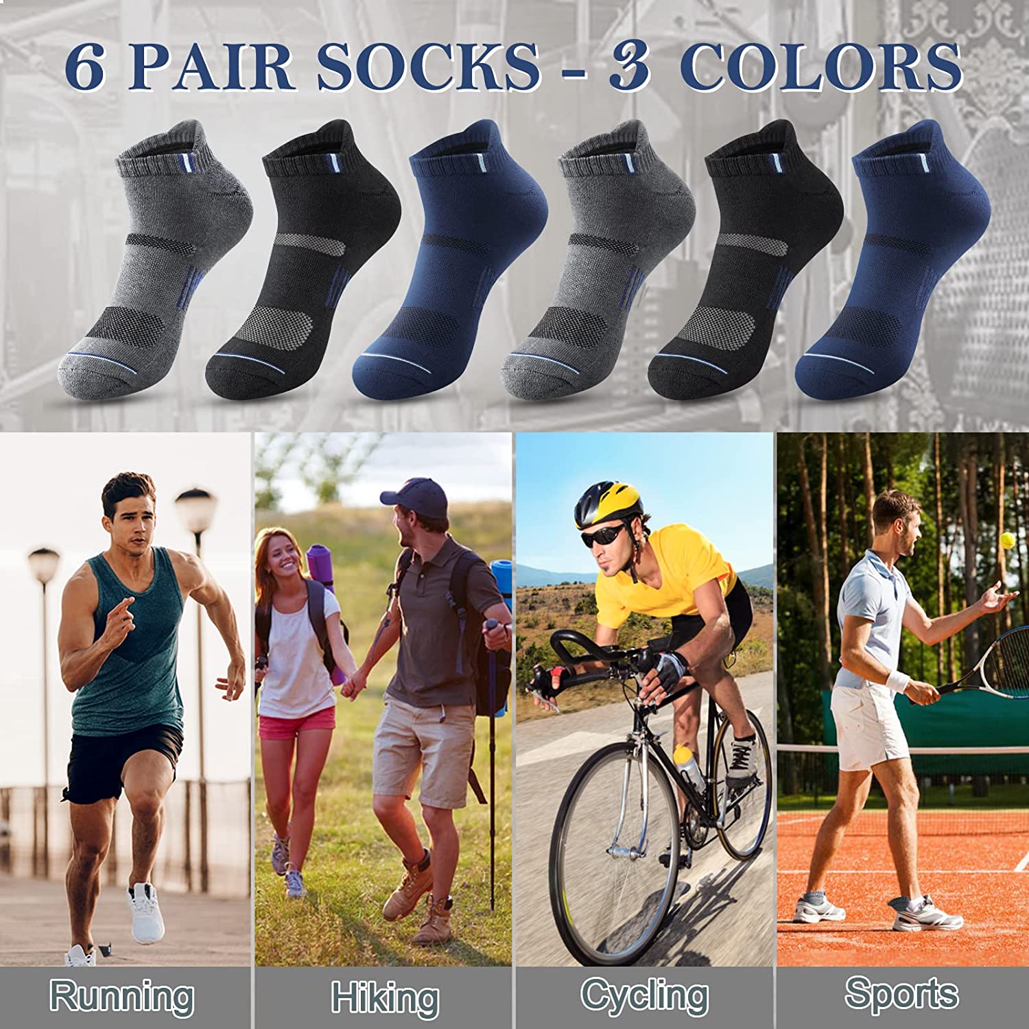 6 Pack Ankle Socks for Men - Athletic Cushioned Low Cut Tab Breathable Socks With Arch Support for Running Hiking Cycling (One size fits 6-11)