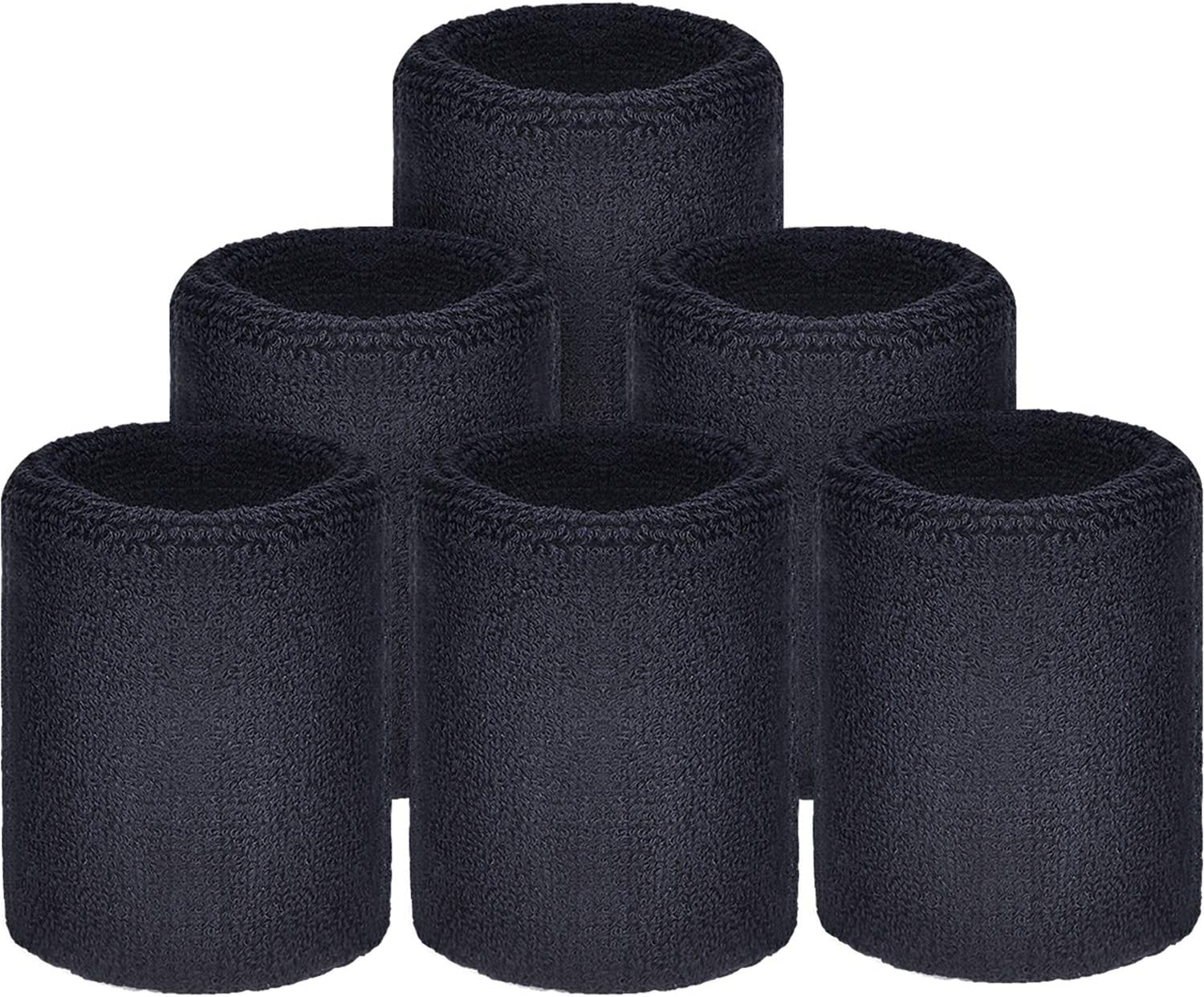 6 Pack Wrist Sweatbands Tennis Wrist Bands Absorbent Sweatbands for Football Basketball Running Athletic Sports and Working Out