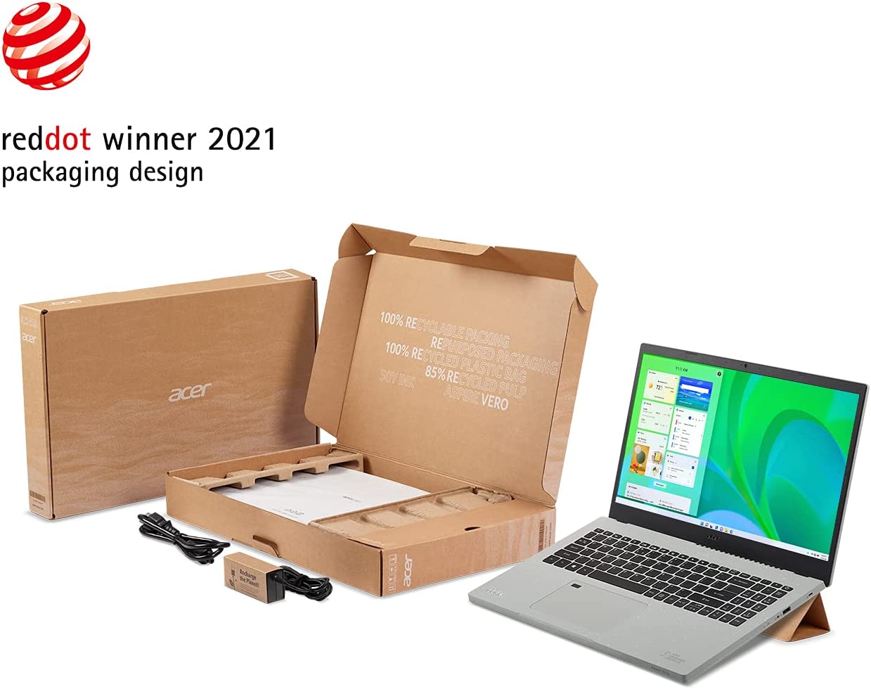 Acer Aspire Vero AV15-51-5155 comes with these high level specs: 11th Generation Intel Core i5-1155G7 Processor 2.5GHz with Turbo Boost Technology up to 4.5GHz (8MB Smart Cache), 15.6" Full HD (1920 x 1080) Widescreen LED-backlit IPS Display (100% sRGB and 300nit Brightness), Intel Iris Xe Graphics, 8GB DDR4 Memory, 256GB NVMe SSD, True Harmony Technology, Two Built-in Stereo Speakers, Acer Purified.Voice Technology with AI Noise Reduction & Two Built-in Microphones, Intel Wireless Wi-Fi 6 AX201 802.11ax Dual-Band 2.4GHz and 5GHz featuring 2x2 MU-MIMO technology, 10/100/1000 Gigabit Ethernet LAN (RJ-45 port), Bluetooth 5.0, Acer Bio-Protection Fingerprint Solution, featuring Computer Protection and Windows Hello Certification, Back-lit Keyboard, HD Webcam (1280 x 720), 1 - USB 3.2 (Type-C) Gen 1 port (up to 5 Gbps), 2 - USB 3.2 Gen 1 Ports (one with Power-off Charging), 1 - USB 2.0 Port, 1 - HDMI Port with HDCP support, Lithium-Ion Battery, Up to 7.5-hours Battery Life, Windows 11 Home, EPEAT Silver Certified, 3.97 lbs. | 1.8 kg (system unit only) (NX.AYCAA.001).