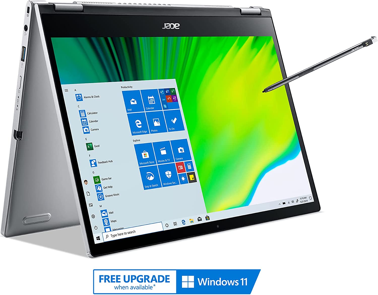 Acer Spin 3 SP313-51N-50R3 comes with these high level specs: 11th Generation Intel Core i5-1135G7 Processor 2.4GHz with Turbo Boost Technology up to 4.2GHz (8MB Smart Cache), Windows 10 Home, 13.3" WUXGA (2560 x 1600) widescreen LED-backlit IPS Multi-Touch Display with AES Pen Support (16:10 Aspect Ratio), Intel Iris Xe Graphics, 8GB LPDDR4X Onboard Memory, 512GB NVMe SSD, DTS Audio, featuring optimized bass response and micro-speaker distortion prevention, Two built-in front facing stereo speakers at any display modes by smart amplifier, Acer Purified.Voice technology with dual built-in microphones, Killer Wireless-AX 1650i 802.11ax WiFi 6 featuring 2x2 MU-MIMO technology (Dual-Band 2.4GHz and 5GHz), Bluetooth 5.1, Back-lit Keyboard, Acer Bio-Protection Fingerprint Solution, featuring Computer Protection and Windows Hello Certification, HD Webcam (1280 x 720) supporting Super High Dynamic Range (SHDR), 2 - USB Type C ports supporting USB 3.2 Gen 2 (up to 10 Gbps), DisplayPort over USB-C, Thunderbolt 4, USB Charging, DC-in, 1 - USB 3.2 Gen 2 port (featuring power-off charging), 1 - USB 3.2 Gen 1 port, 1 - HDMI 2.0 Port with HDCP support, Lithium-Ion Battery, Up to 15-hours Battery Life, 3.09 lbs. | 1.4 kg (system unit only) (NX.A9VAA.001)