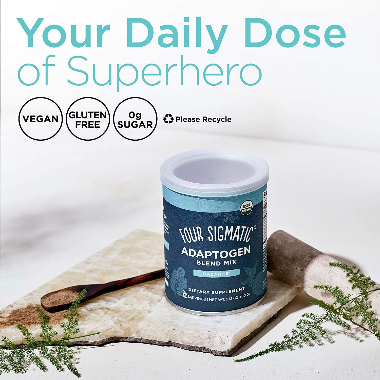 Imagine never having to pull jar after jar of superfood powders from your kitchen cupboard again. Now, all you need is just one tin of our high-powered Adaptogen Blend that features 1600mg most widely researched adaptogens. Adapt-o-what?? Adaptogens are naturally occurring, non-toxic substances that can help protect your body from stress by stabilizing and optimizing a host of physiological functions. Rather than serving a single targeted purpose, an adaptogen will (ahem) adapt its healing properties to whatever your body specifically needs at a given time. Adaptogens are safe for long-term use, and non-habit forming, so sip any time of day!