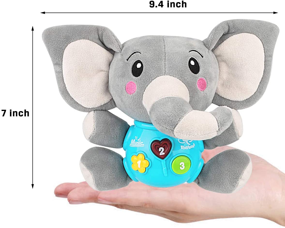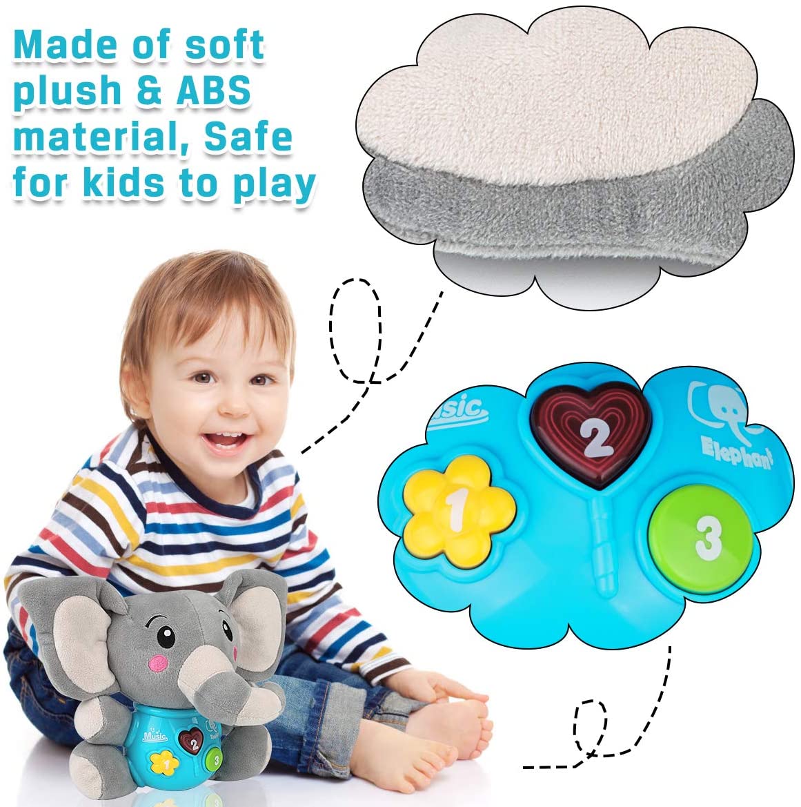 Aitbay Plush Elephant Music Baby Toys 0 3 6 9 12 Months, Cute Stuffed Aminal Light Up Baby Toys Newborn Baby Musical Toys for Infant Babies Boys & Girls Toddlers 0 to 36 Months