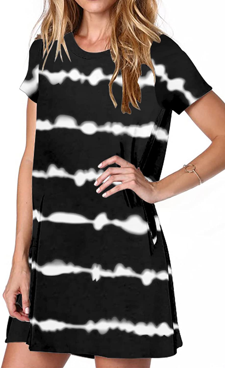 Alaster Women’s Casual Summer T Shirt Dress Loose Short Sleeve Tunic Dress with Pocket for Women