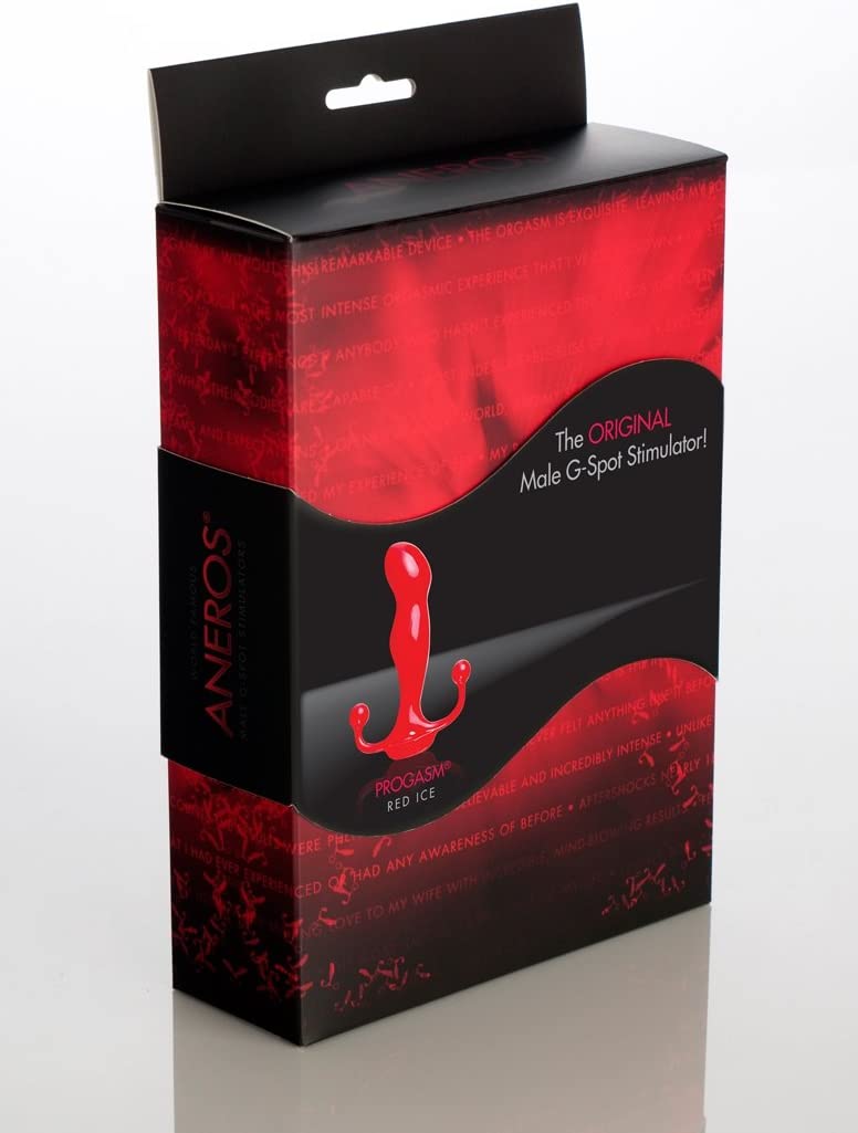 Aneros Programs Red Ice Prostate Massager. the world famous, hands free stimulator. Aneros Prostate Perineum Stimulator. Through the patented, anatomical design, Aneros products provide incredible sexual pleasure by directly stimulating the prostate, which is now being called the Male G-Spot. Backed by years of testimonials from happy customers, Aneros has established itself as the ultimate source for male sexual fulfillment. With the looks of a red sports car and the feel of the popular Programs Ice, the latest release is ready to race home to you. The newest red Programs has the same qualities as glass while remaining unbreakable! Despite its appearance, the Ice is not made of glass. Rather, it is made of an award-winning, FDA approved, medical and food grade plastic which is rapidly being used as a replacement for glass because it does not break. The production of this plastic also emits less gases than other types, making the manufacturing process better for the environment. Highlights: largest Aneros model. Bubbles make each one unique. Round perineum tab design. Kundalini K-Tab provides additional sensations. Has size, but is very mobile. For advanced and experienced users. Specifications: tip width 1.25 inches. Mid ridge width 1.30 inches. Stem to perineum distance 1.52 inches. Insert able length 4.5 inches. Made in the USA from FDA approved materials. Colored Biphenyl BPA free Plastic Polyester Triton.