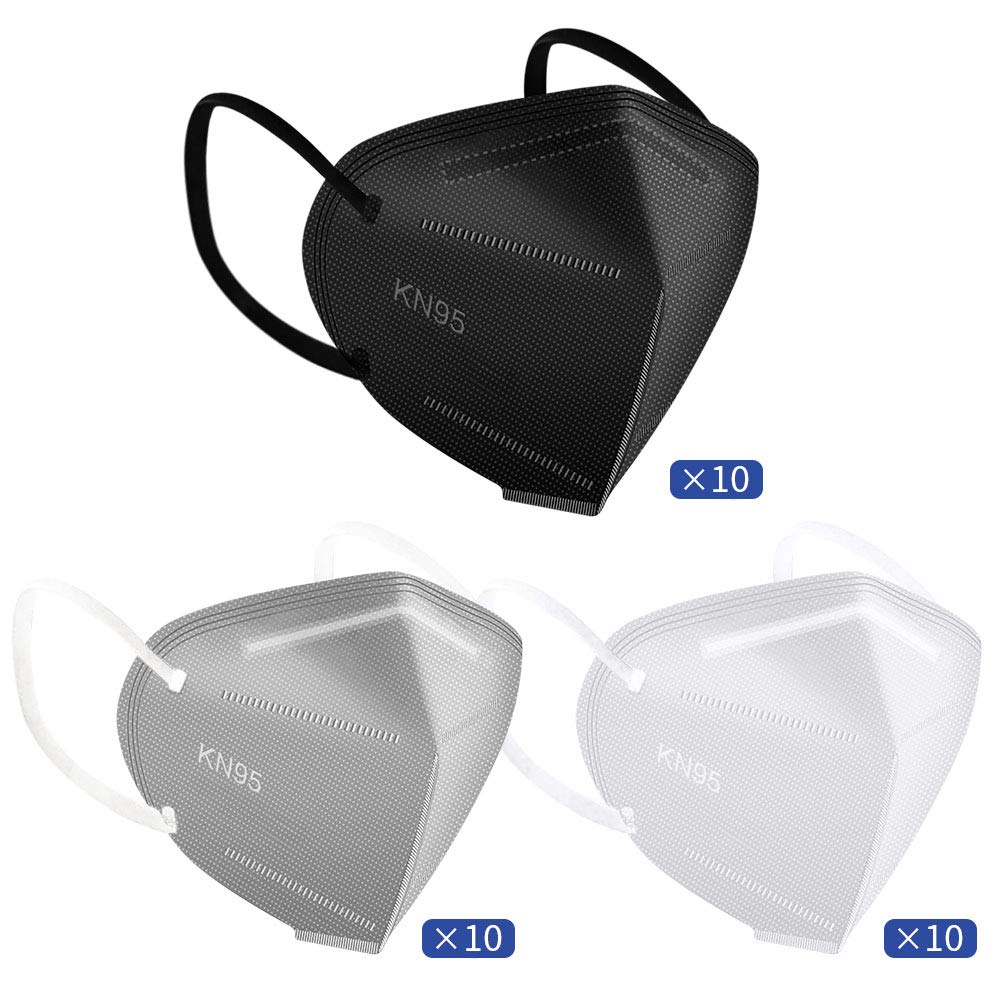 ApePal 30PCS 5-Layer Disposable KN95 Face Masks Wide Elastic Ear Loops Masks,(White,Black,Grey)