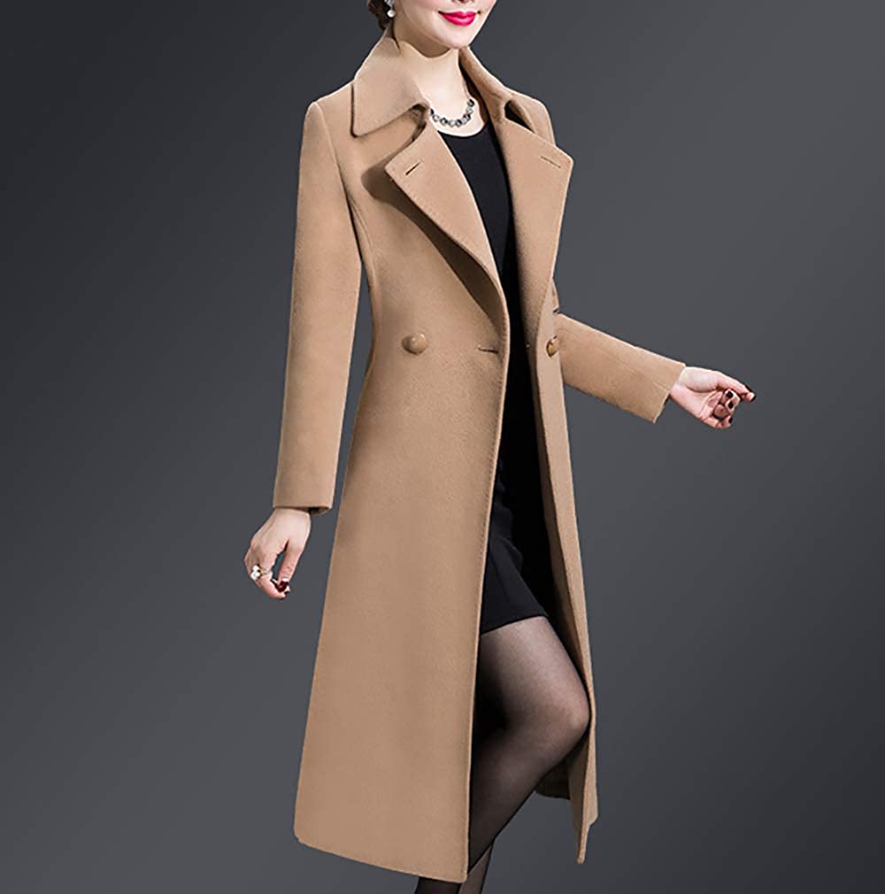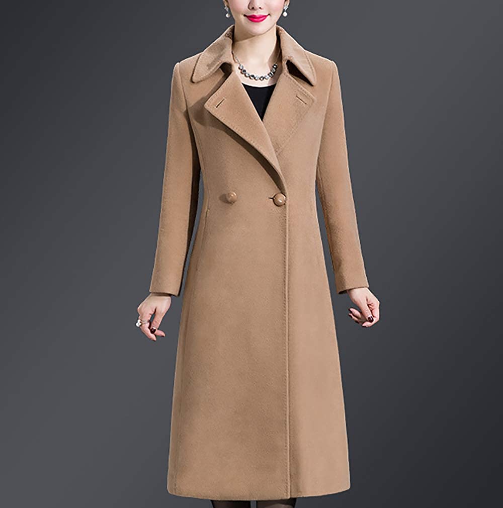 Aprsfn Women's Elegant Solid Color Mid-Length Thicken Warm Wool Blend Coat