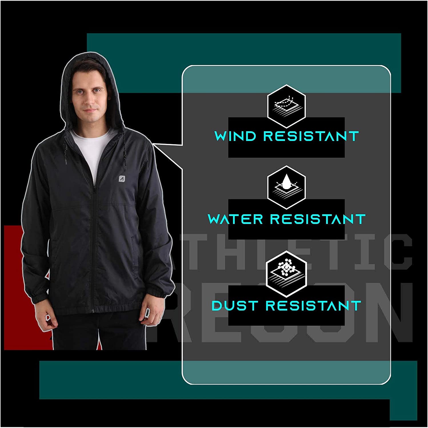 ARECON Men’s Windbreakers Waterproof Windproof Lightweight Jacket for Hoodie Full Zip Breathable Outdoor Running Rain Coat