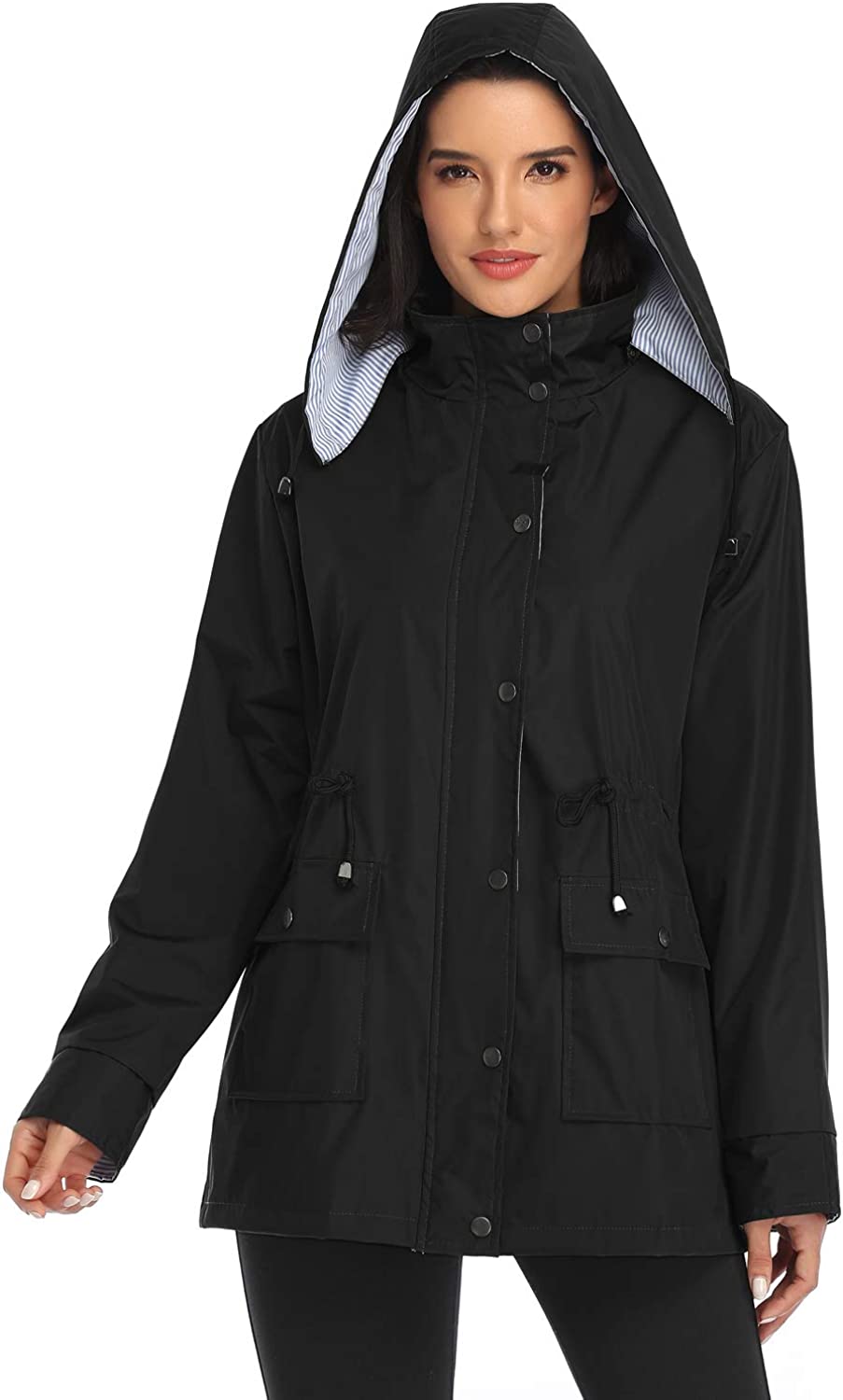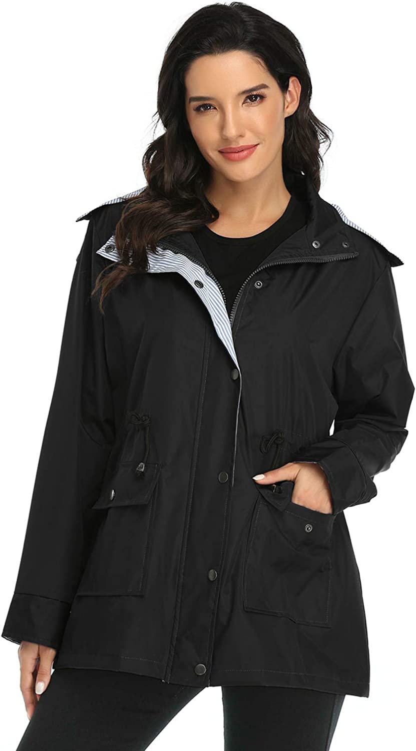 Arthas Women Light Rain Jacket Waterproof Active Outdoor Trench Raincoat with Hood Lightweight Plus Size for Girls