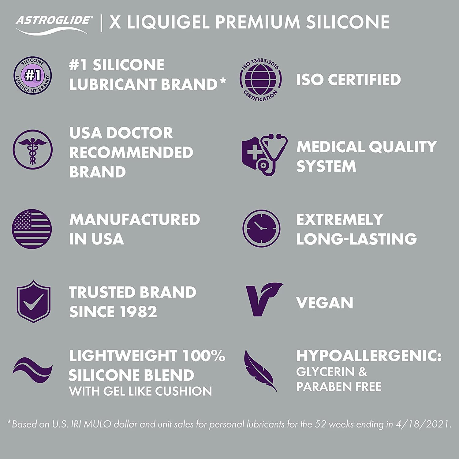 Astroglide X LiquiGel is a revolutionary formula that combines the lightweight, ultra-slick feel of our liquid silicone with the cushion, comfort and control of our silicone gel. Thoughtfully designed to enhance all kinds of play, Astroglide X LiquiGel is highly versatile and perfect for long-lasting romance and steamy shower vibes. Use with a partner or alone. Silicone lubricants are also great for people with sensitivities.