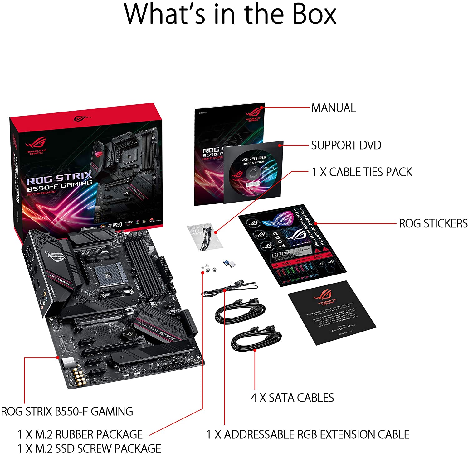 Experience next-level performance and connectivity with the ASUS ROG Strix B550-F Gaming, featuring PCIe 4. 0 and 2. 5Gb Ethernet. Robust power and effective cooling make the ROG Strix B550-F Gaming the perfect partner for 3rd Gen AMD Ryzen CPUs. Futuristic aesthetics, intuitive software, and a reliable Stack Cool 3+ design put your build in the winner’s circle. Free 3-months Adobe Creative Cloud Subscription: Receive complimentary access with the purchase of this product (offer valid from 9/15/2021 to 9/15/2022) visit /public/picture123/20230410/23bbm4qnx2387442 to claim.
