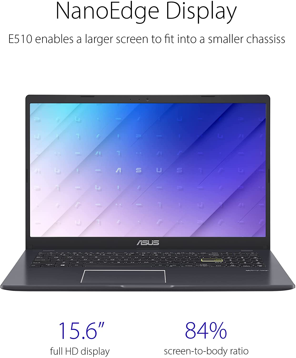 The ASUS Vivobook Go 15 L510 laptop is designed to help you be productive all day — even when you’re on the move. This light and ultra thin 15 inch laptop is powered by the latest Intel® processor and provides long-lasting battery life, and it has a cleverly designed 180° lay-flat hinge that makes it easy to share content or collaborate with friends. This ASUS laptop also lets you leave the heavy power adapter at home…its day-long battery life gives you the flexibility to work or play anywhere. Plus, with a fanless design that keeps noise levels down, you won’t be distracted when working on a spreadsheet or watching a movie on your ASUS Vivobook Go. It’s the best Windows laptop for people on the go. *The actual transfer speed of USB 3.0, 3.1, 3.2 (Gen 1 and 2), and/or Type-C will vary depending on many factors including the processing speed of the host device, file attributes and other factors related to system configuration and your operating environment.