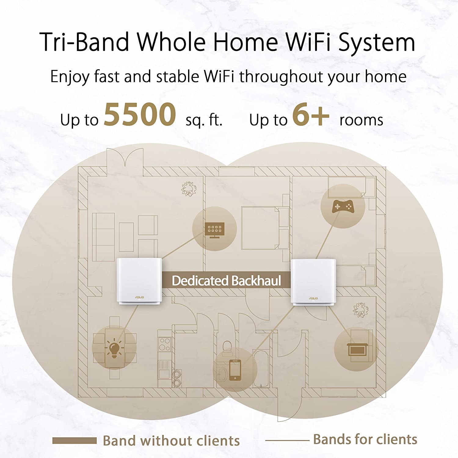 ZenWiFi AX (XT8) is a whole-home mesh WiFi system that combines extremely fast and stable wireless networking performance with simple configuration and elegant design with coverage up to 5 500 sq ft Featuring the latest WiFi 6 technology ZenWiFi AX takes mesh WiFi to a whole new level with dramatically improved coverage speed and stability.
