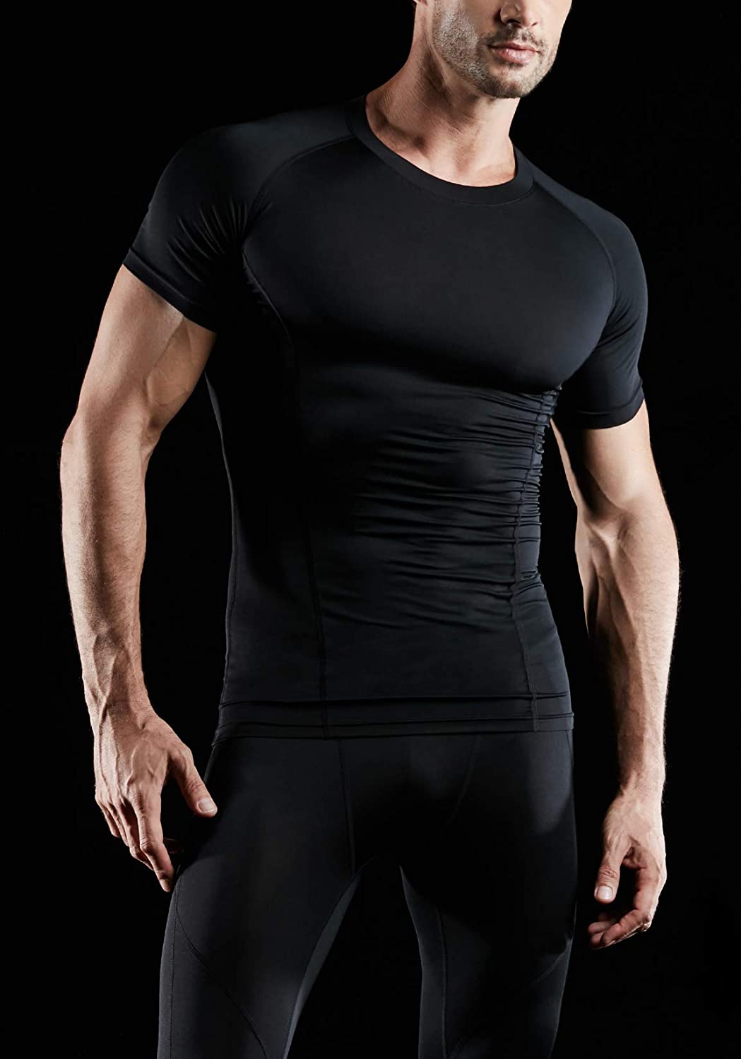 ATHLIO 1 or 3 Pack Men's Cool Dry Short Sleeve Compression Shirts, Sports Baselayer T-Shirts Tops, Athletic Workout Shirt