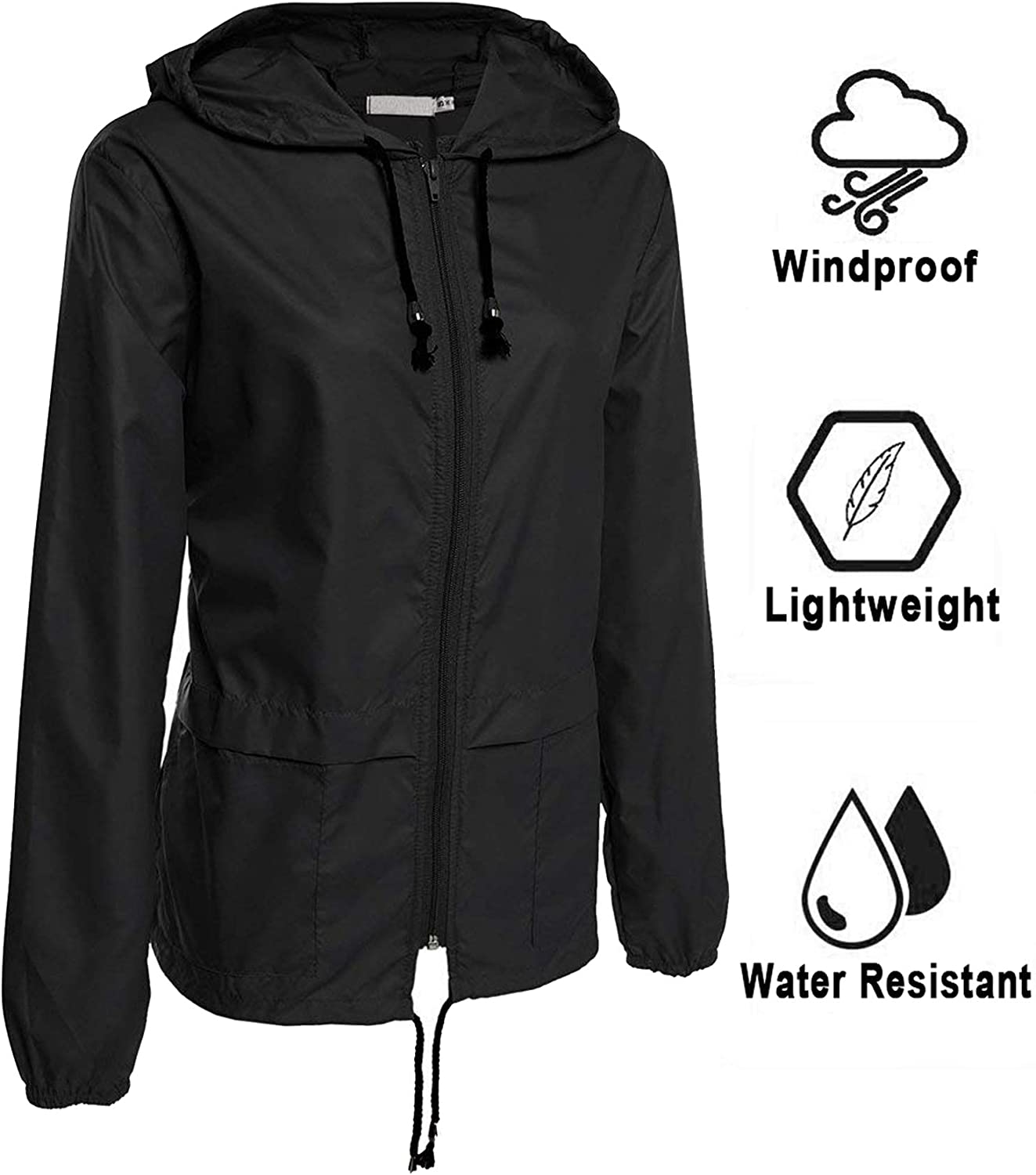 Avoogue Raincoat Women Lightweight Waterproof Rain Jackets Packable Outdoor Hooded Windbreaker