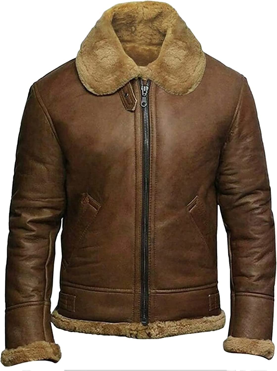B3 Bomber Sheepskin Shearling Leather Jacket Raf Aviator Fighter Pilots WW2 Winter Fur Jacket For Men
