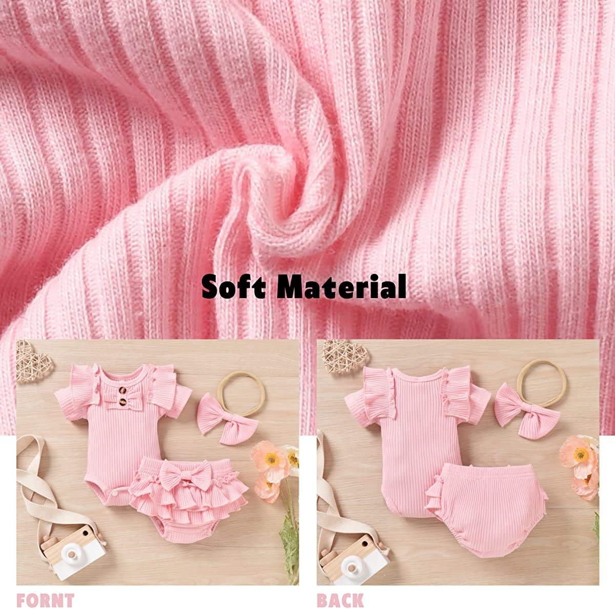 Baby Girls Short Sleeve Bodysuit Bloomer Shorts Ribbed Outfits
