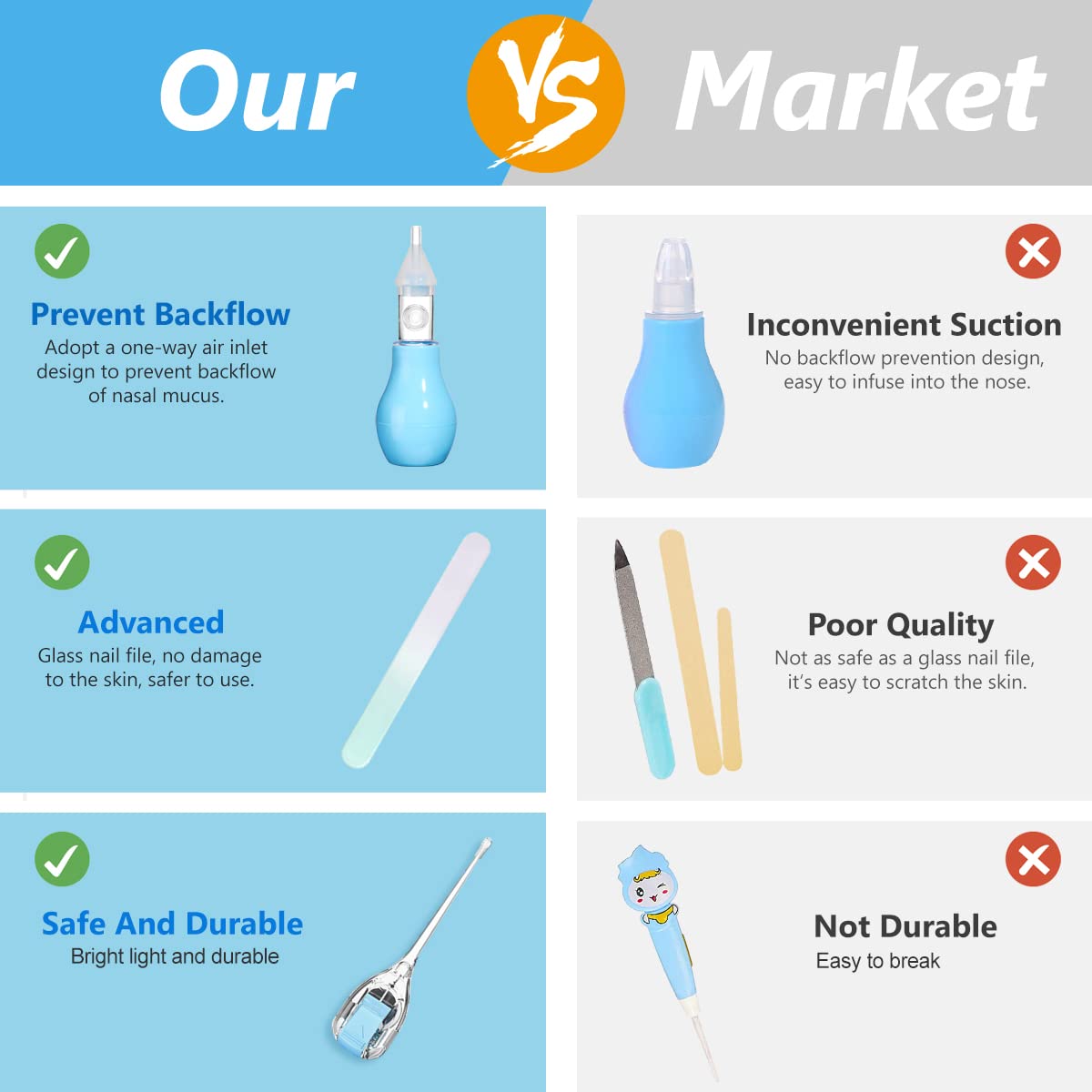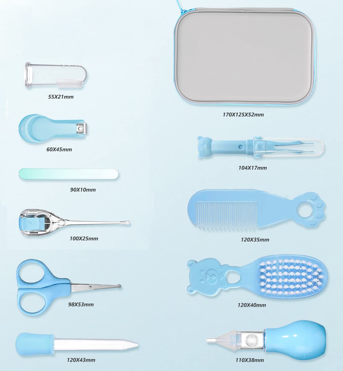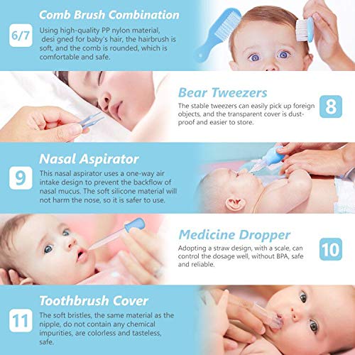 Baby Grooming Kit, Portable Baby Safety Care Set with Hair Brush Comb Nail Clipper Nasal Aspirator etc for Nursery Newborn Toddlers Infant Girl Boys Keep Clean (11 in 1 Blue)