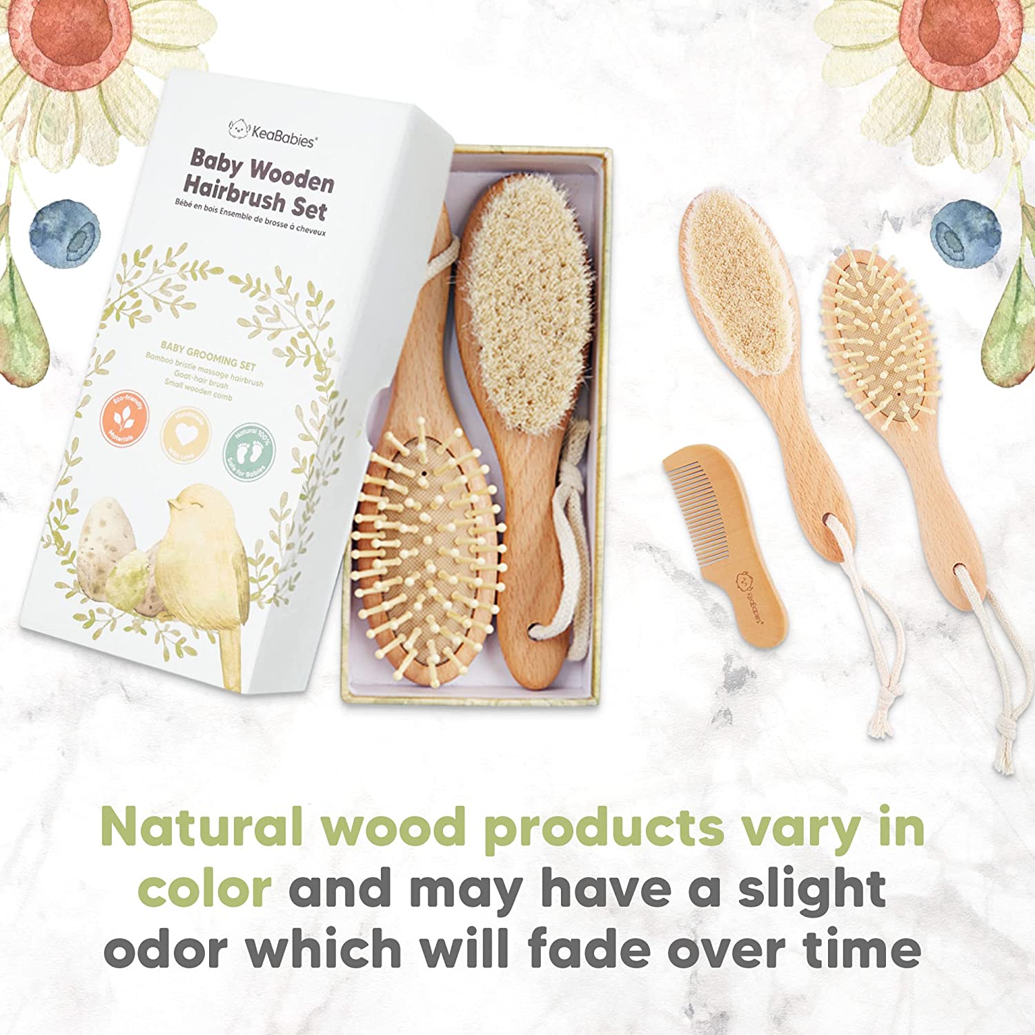 Baby Hair Brush - Natural Wooden Cradle Cap Brush with Soft Goat Bristle - Baby Brush Set for Newborns - Toddler Comb - Perfect Scalp Grooming Product for Infant, Toddler, Kids (Oval, Walnut)