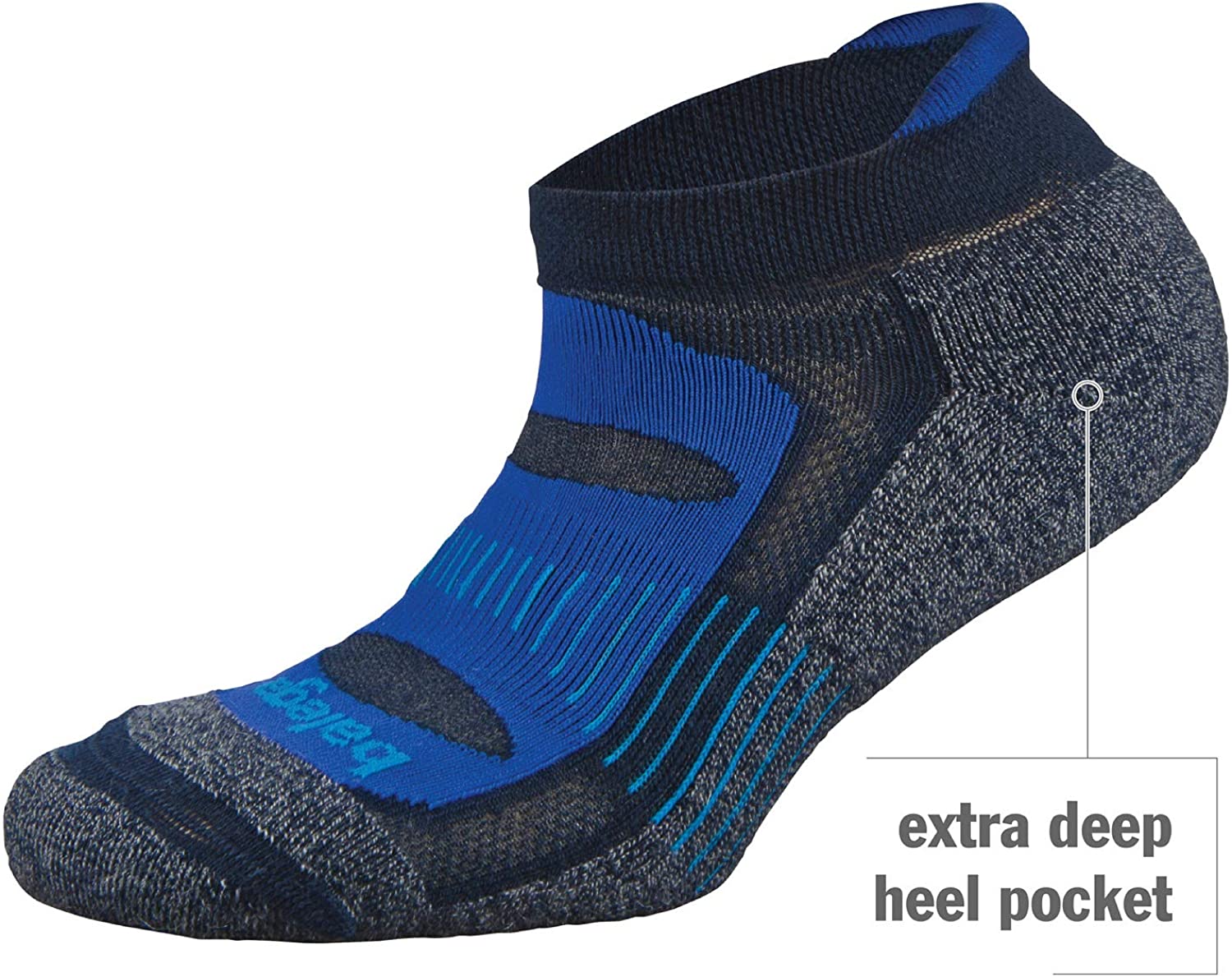 Balega Blister Resist No Show Socks for Men and Women blend the best of nature and technology, by combing natural and synthetic fibers for ultimate anti-blister performance. Soft, durable, natural mohair is known for being anti-friction, strong, shrink-resistant, while proprietary Drynamix, along with specially constructed mesh ventilation panels, wicks moisture away from the skin to keep feet dry. Together they make an exceptional, race-tested sock that protects even the most sensitive skin against sheer friction blisters. The seamless toe box minimizes chafing across the top of the foot, and a high heel tab and extra deep heel pocket ensure that socks won’t slip down into shoes during walks, runs, and hikes. The Balega Blister Resist No Show Socks features high-volume cushioning for comfort during extended activity.