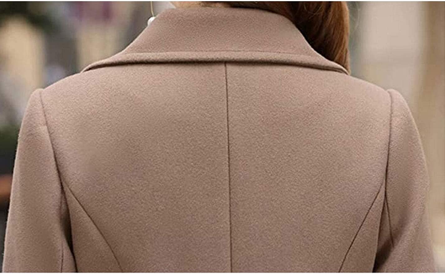 Bankeng Women Winter Wool Blend Camel Mid-Long Coat Notch Double-Breasted Lapel Jacket Outwear