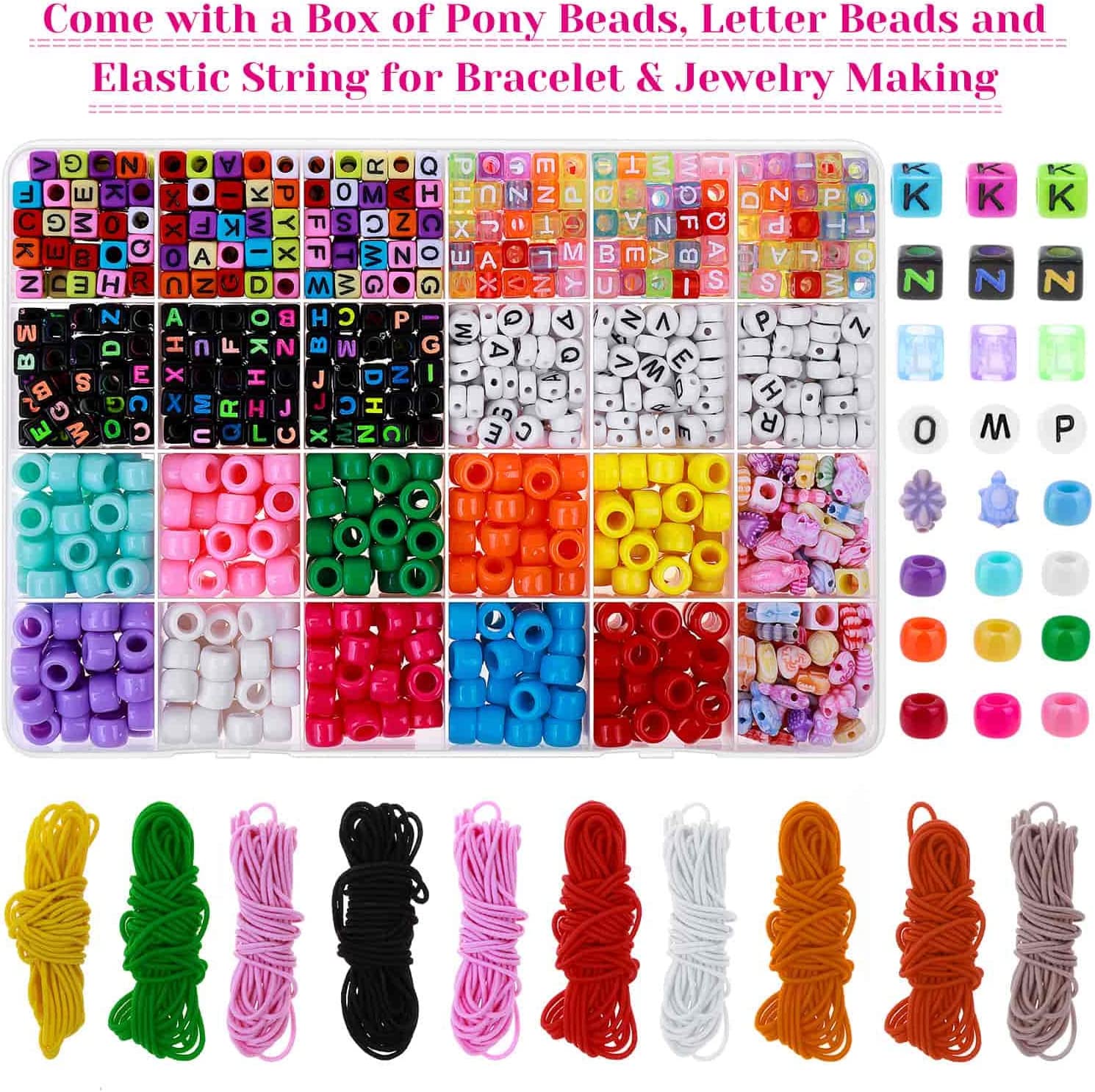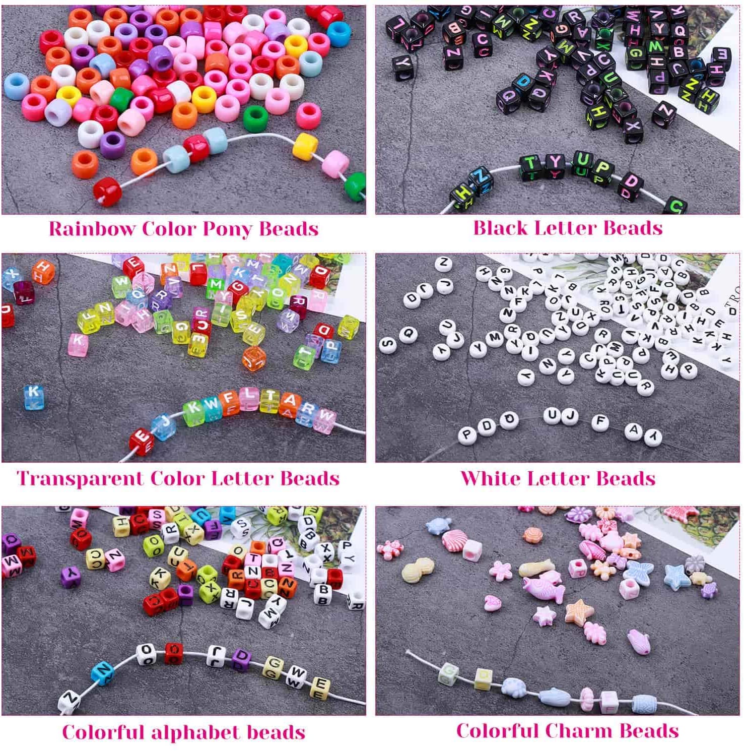Bead Bracelet Making Kit, Shynek Bead Friendship Bracelets Kit with Pony Beads Letter Beads Charm Beads and Elastic String for Bracelet and Jewelry Making