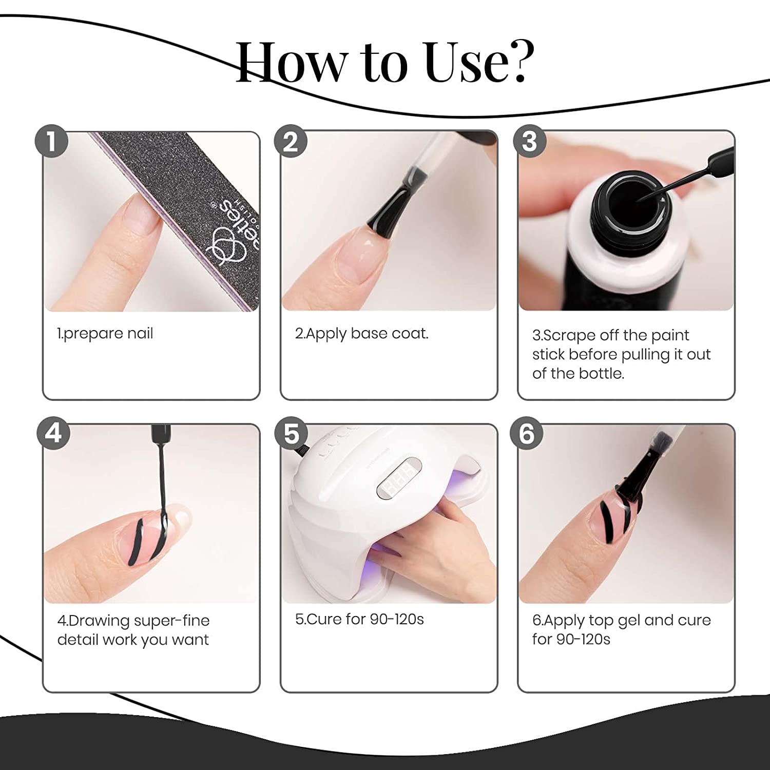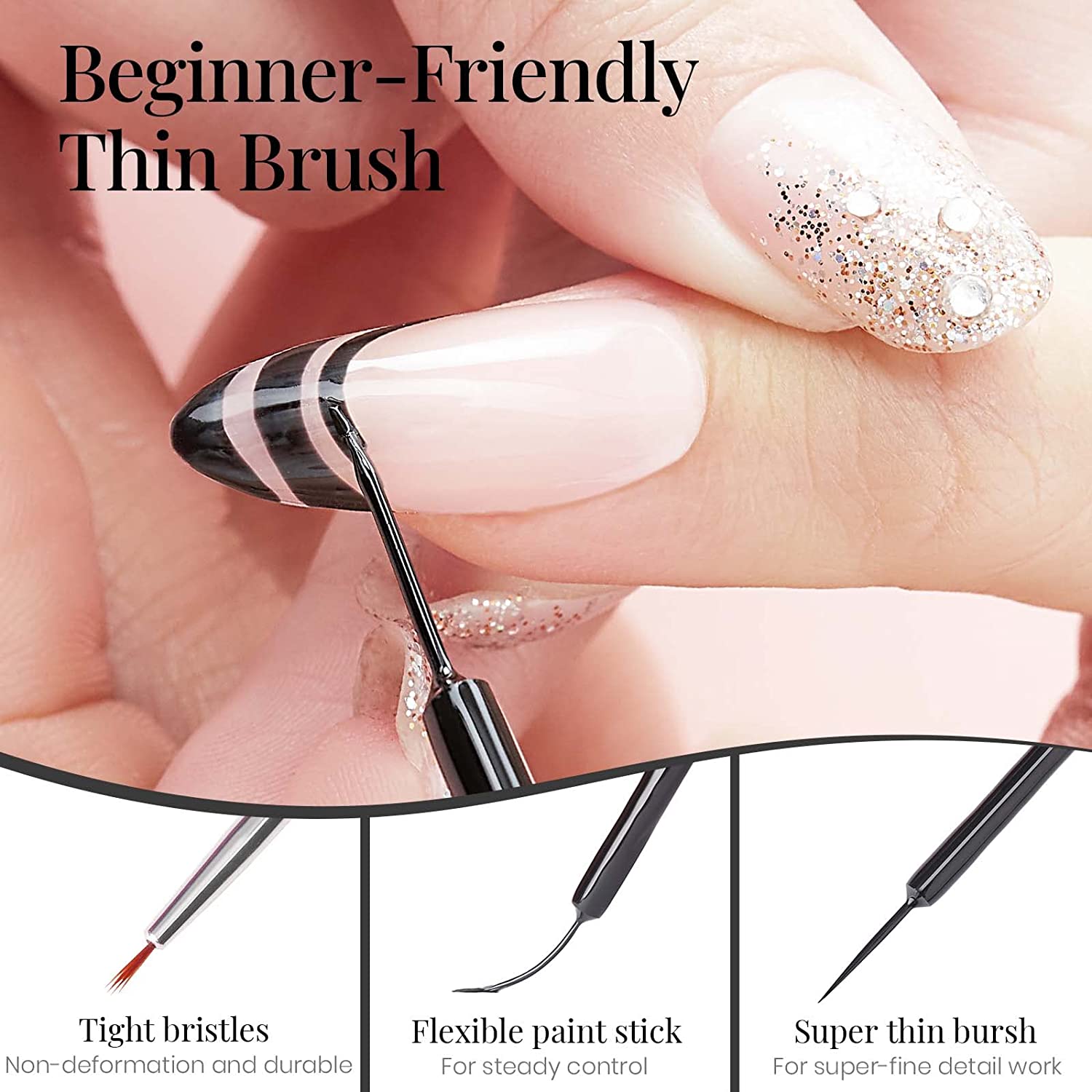 Beetles Gel Polish Nail Art Gel Liner Set- 2 Popular Black White Colors Gel Art Paint for Swirl Nails Euphoria Nail Built Thin Nail Art Brush in Gel Pens Soak off Nail Art Gel Polish Kit Gift Box