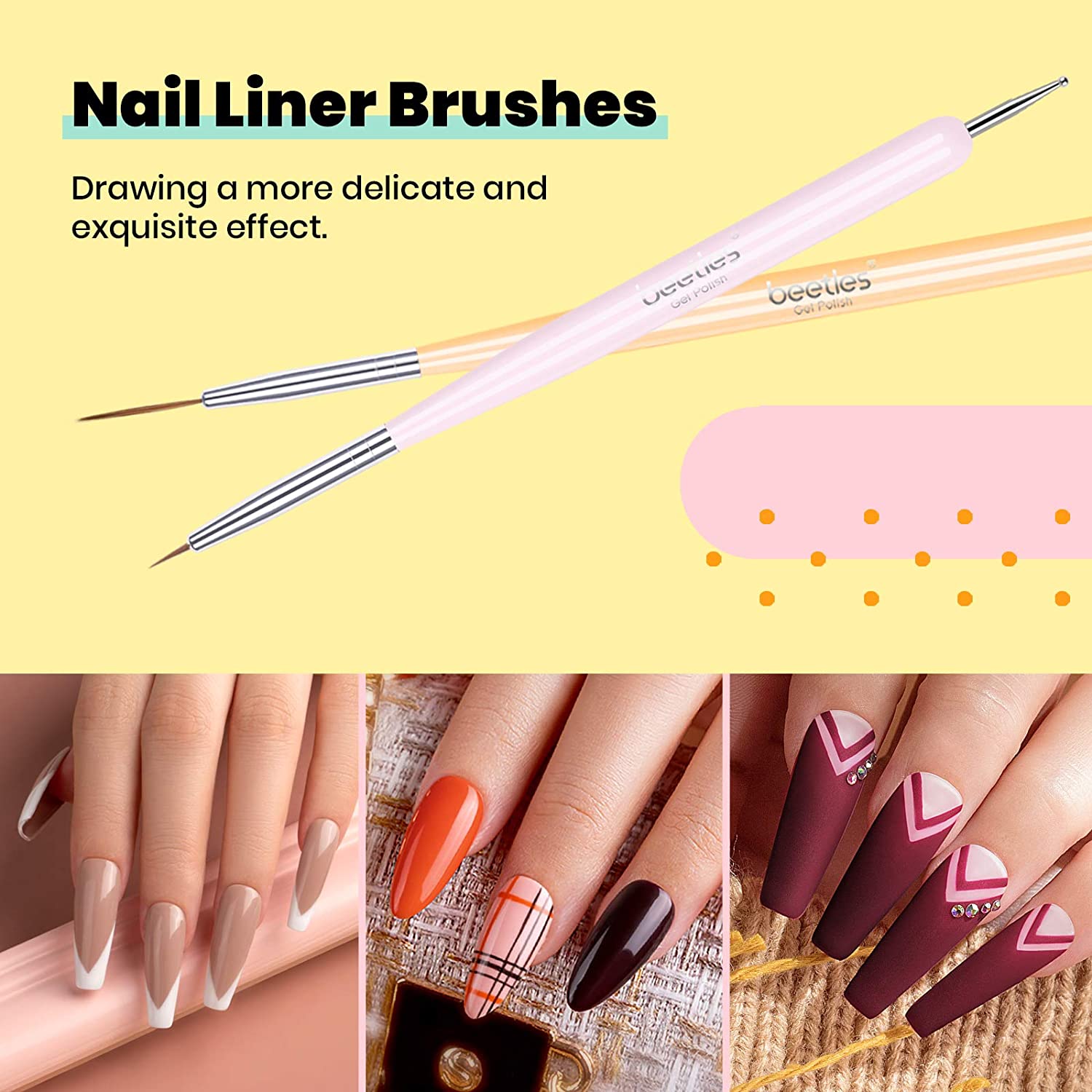 Beetles Nail Art Brushes Set Gel Polish Nail Art Design Pen Painting Tools with Nail Extension Gel Brush, Builder Gel Brush, Nail Art Liner Brush and Nail Dotting Pen for Salon at Home DIY Manicure