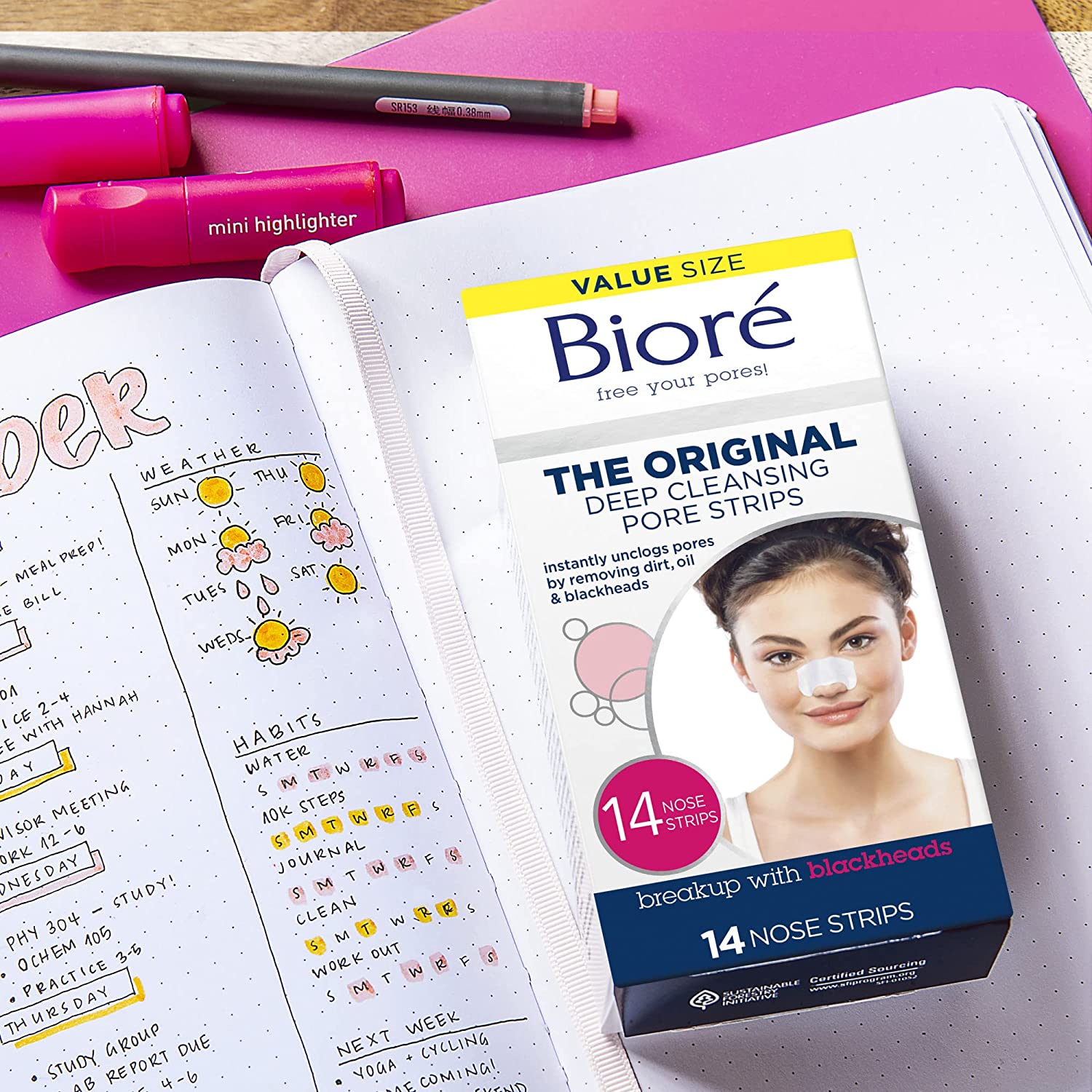 Bioré Original, Deep Cleansing Pore Strips, Nose Strips for Blackhead Removal, with Instant Pore Unclogging, 14 Count, features C-Bond Technology, Oil-Free, Non-Comedogenic Use