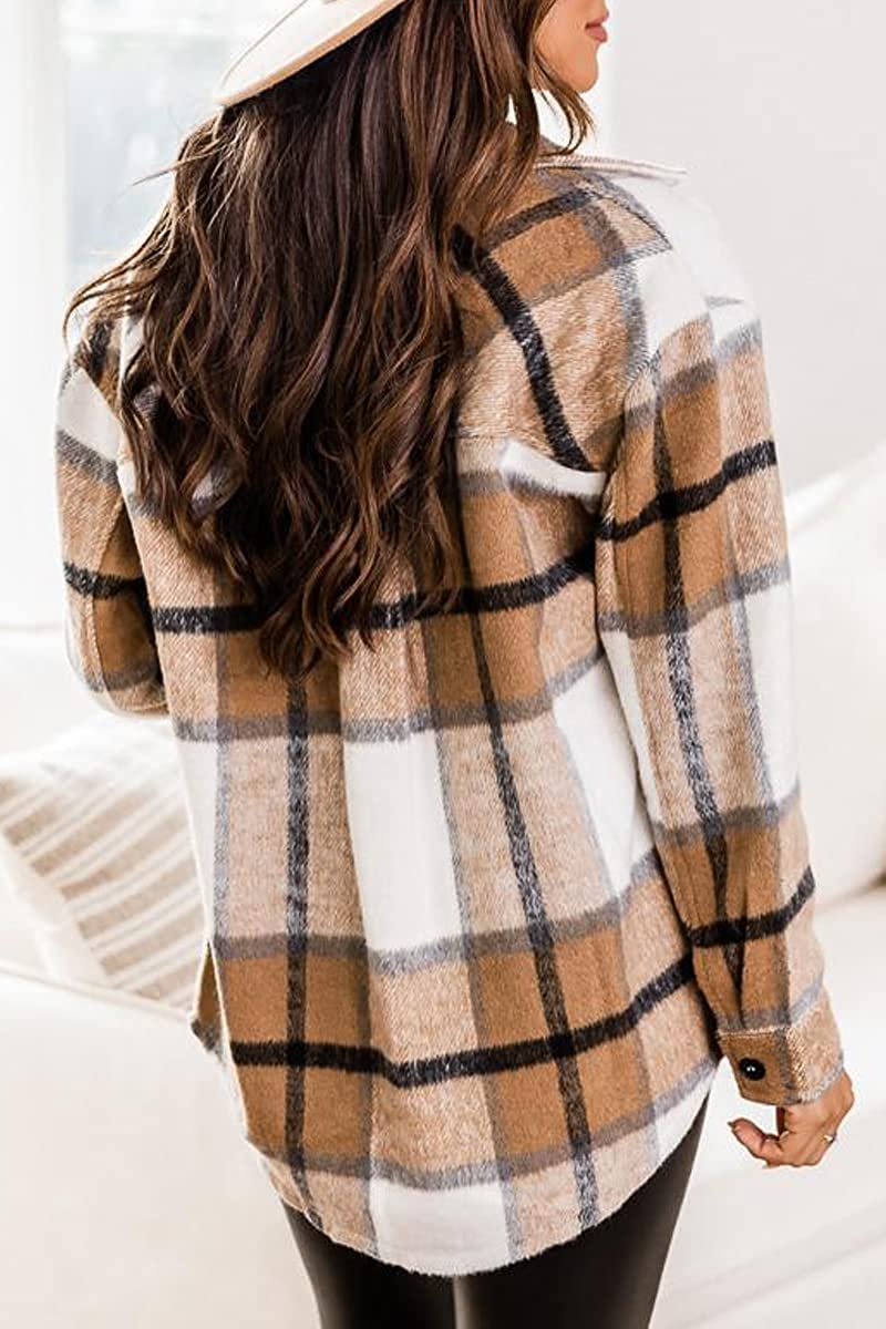 Blansdi Women’s Casual Plaid Flannel Shacket Jacket Oversized Button Down Long Sleeve Fall Shirt Jacket Coat Tops