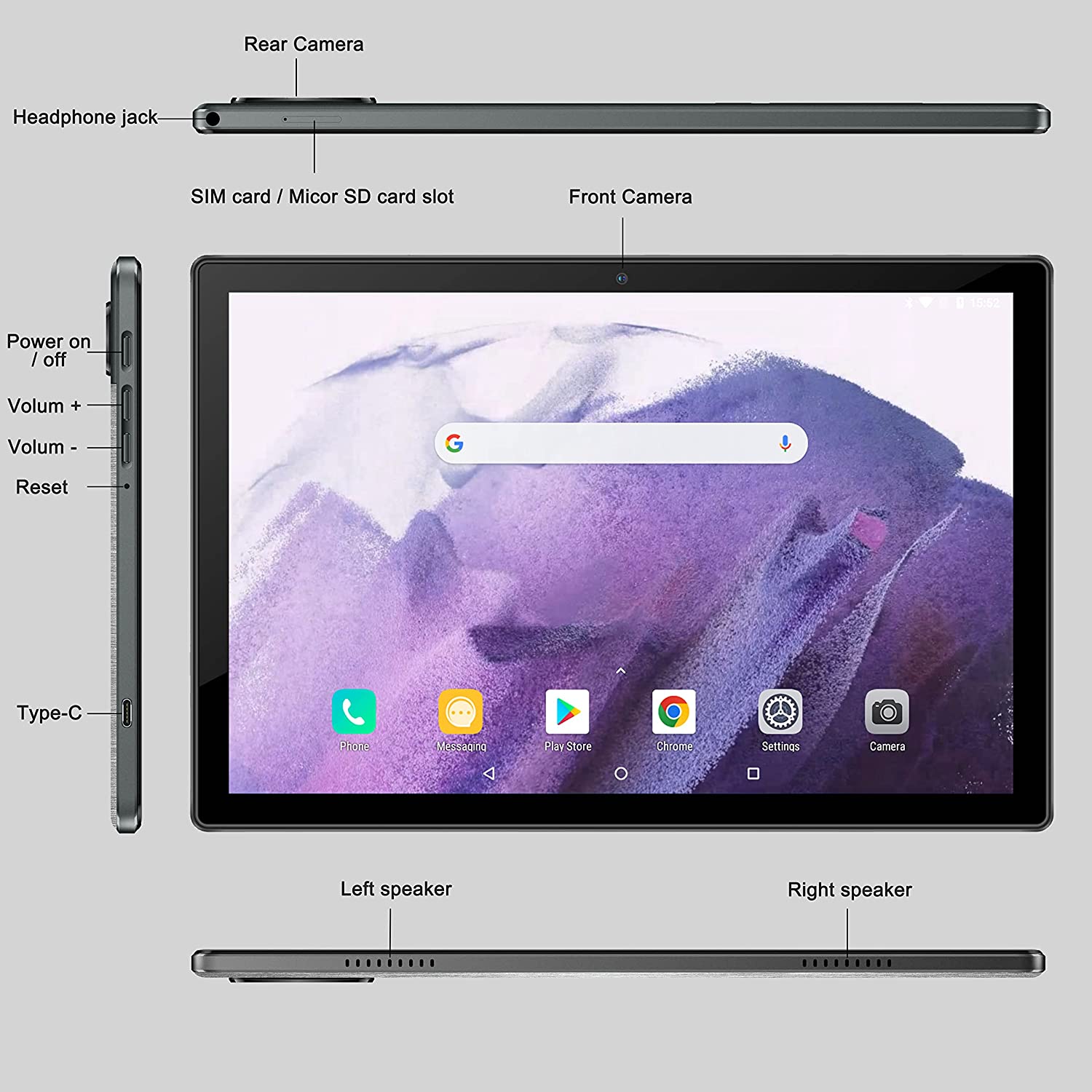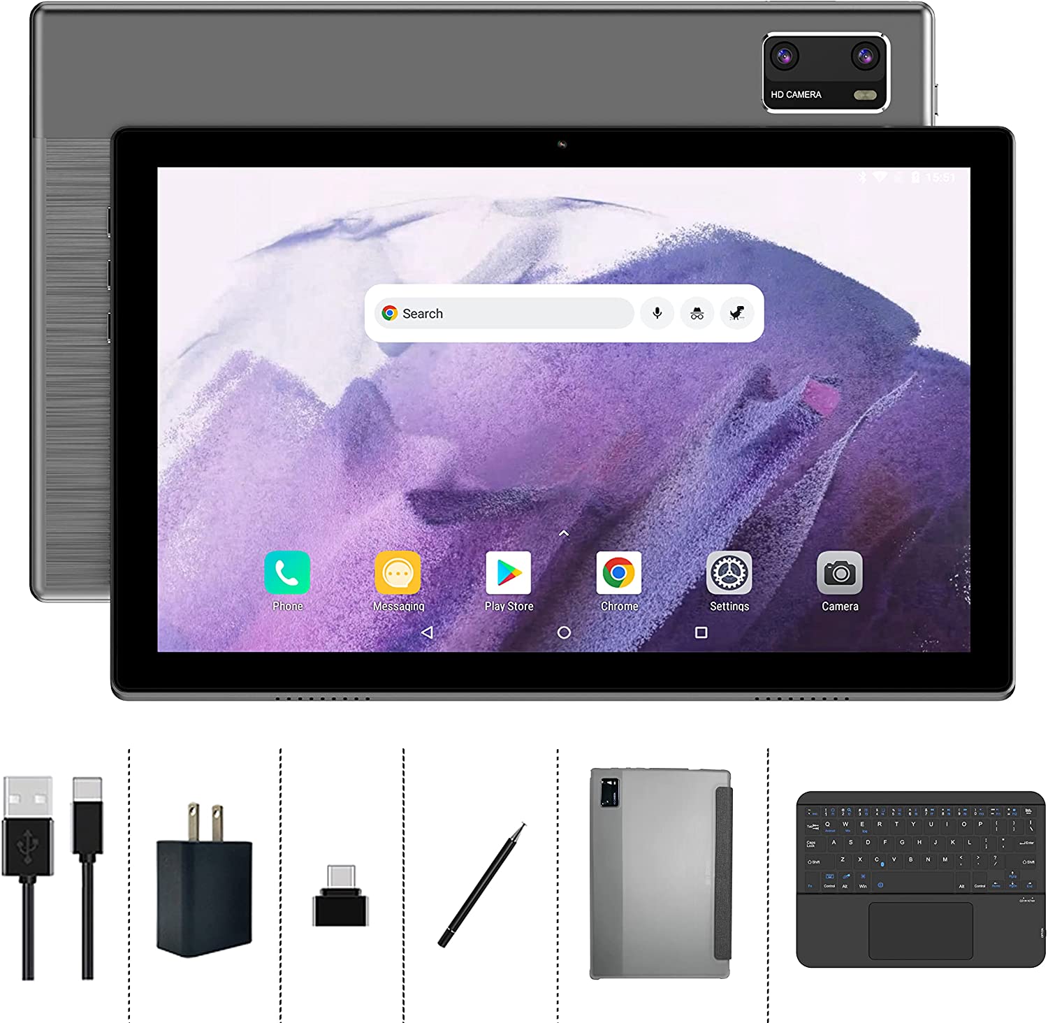 BNHGK Tablet with Keyboard 10.1 Inch Android 10.0 Tablets with 6+128GB Dual Sim Card 5+13 MP Camera, WiFi, Bluetooth, Cellular, GPS, HD Touchscreen